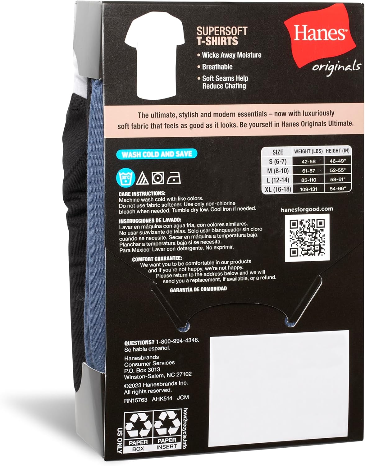 Hanes Boys Originals T-Shirt Pack, Supersoft Undershirts For Boys, Moisture-Wicking, 3-Pack