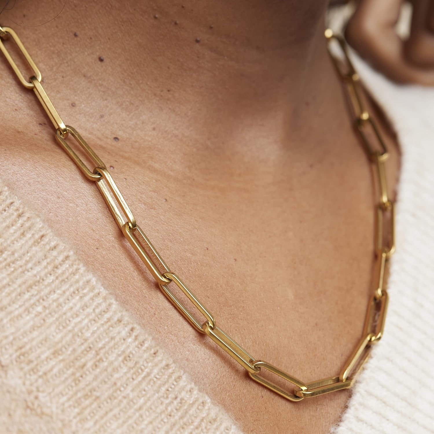 Be the first to review “18K Gold Plated Titanium Thick Paperclip Chain Necklace, Minimalist Style, Bold Chunky Paper Clip Chain Necklace, Short Necklace, Never Tarnish”