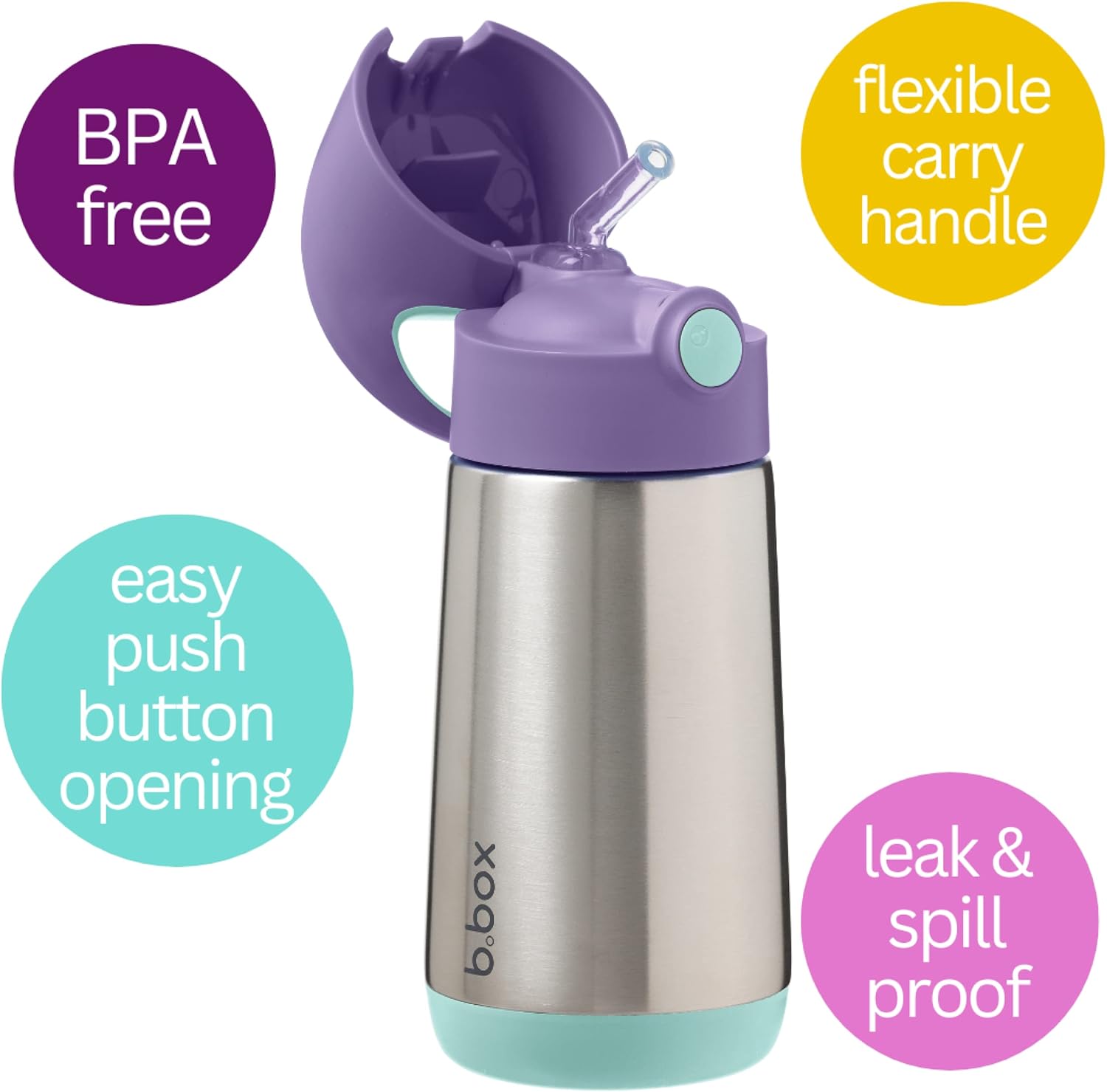 Be the first to review “b.box 12 oz Insulated Water Bottle: Keeps Drinks Cold up to 8 Hours, Warm up to 6 Hours. Double Wall Stainless Steel Kids Water Bottle. Dishwasher Safe (Lilac Pop, 12 oz)”