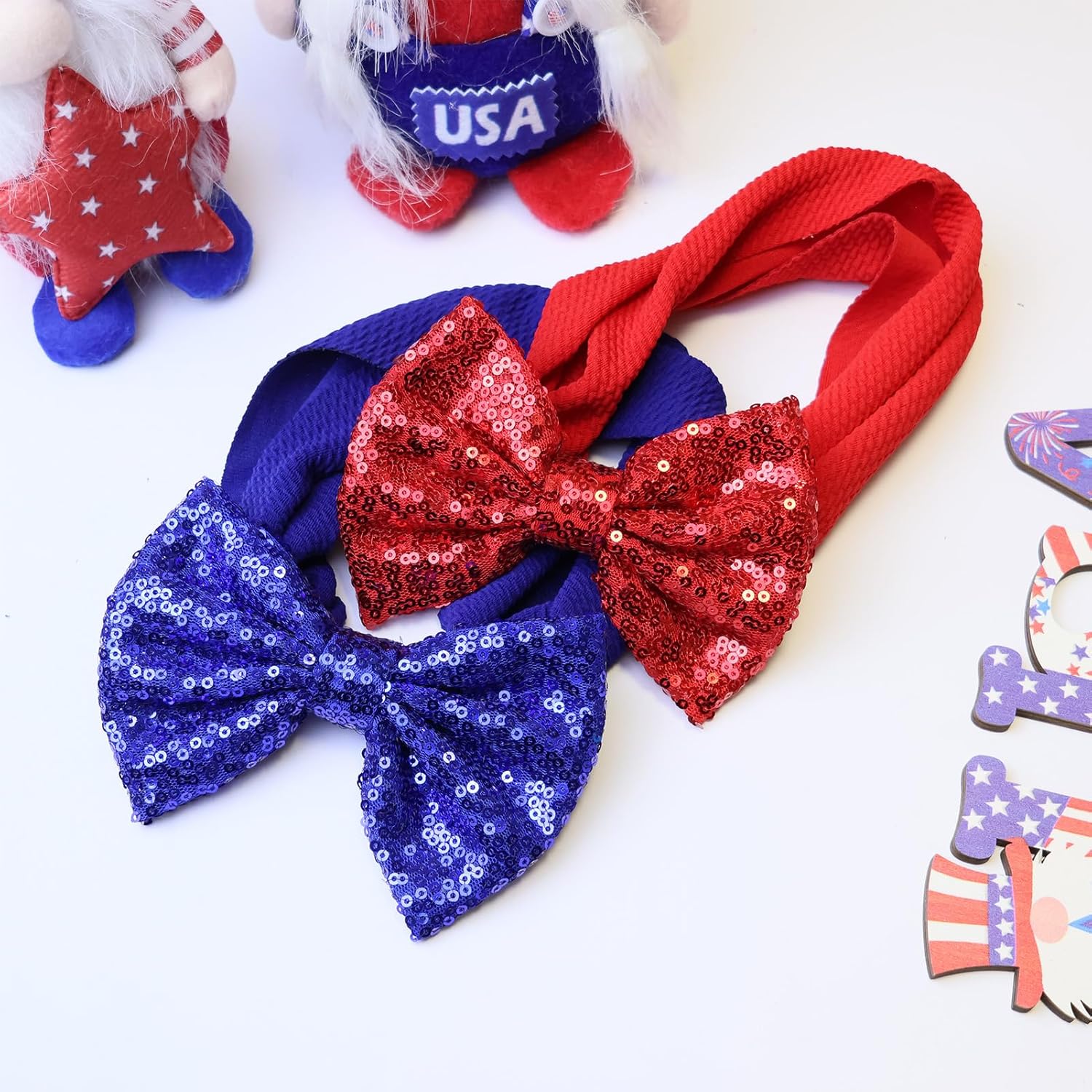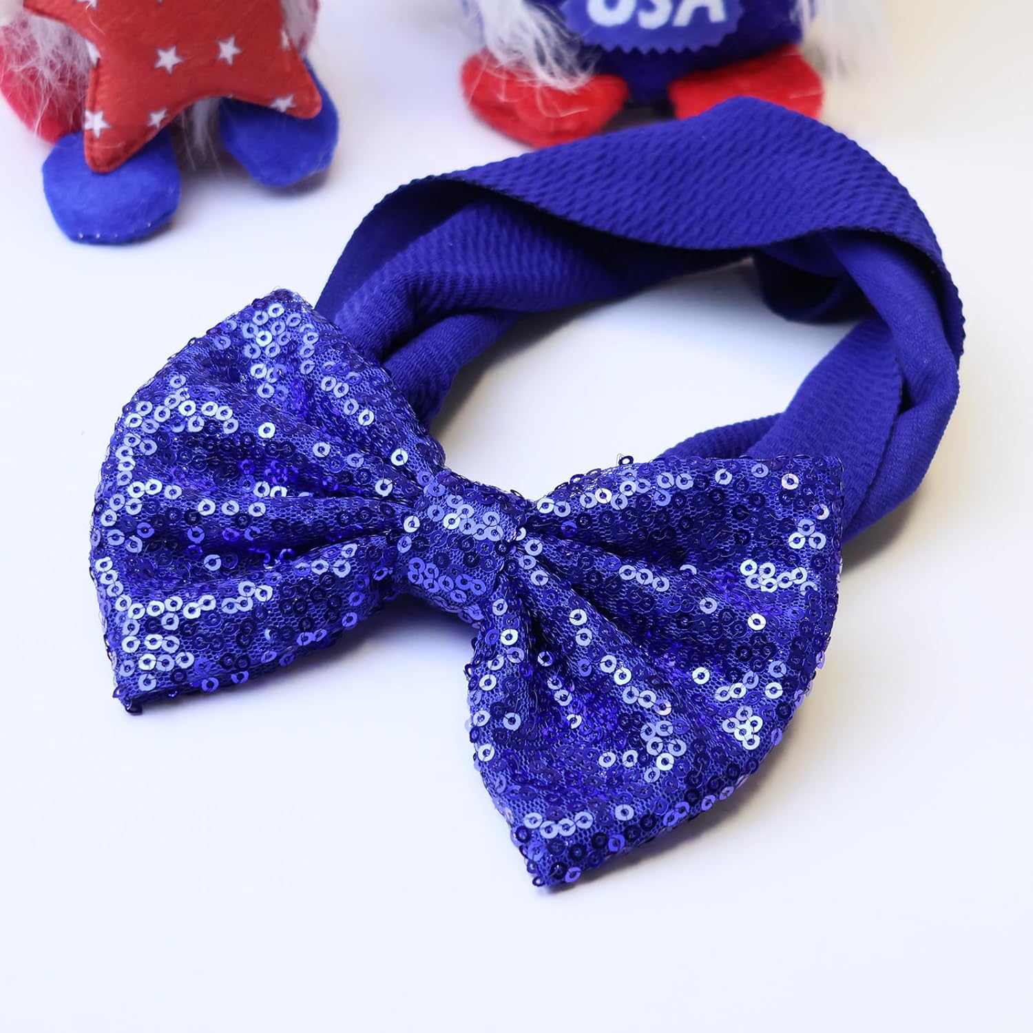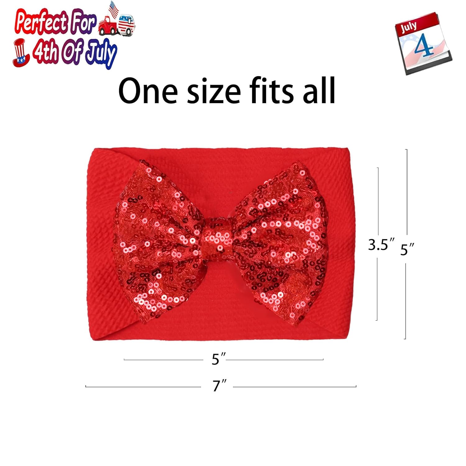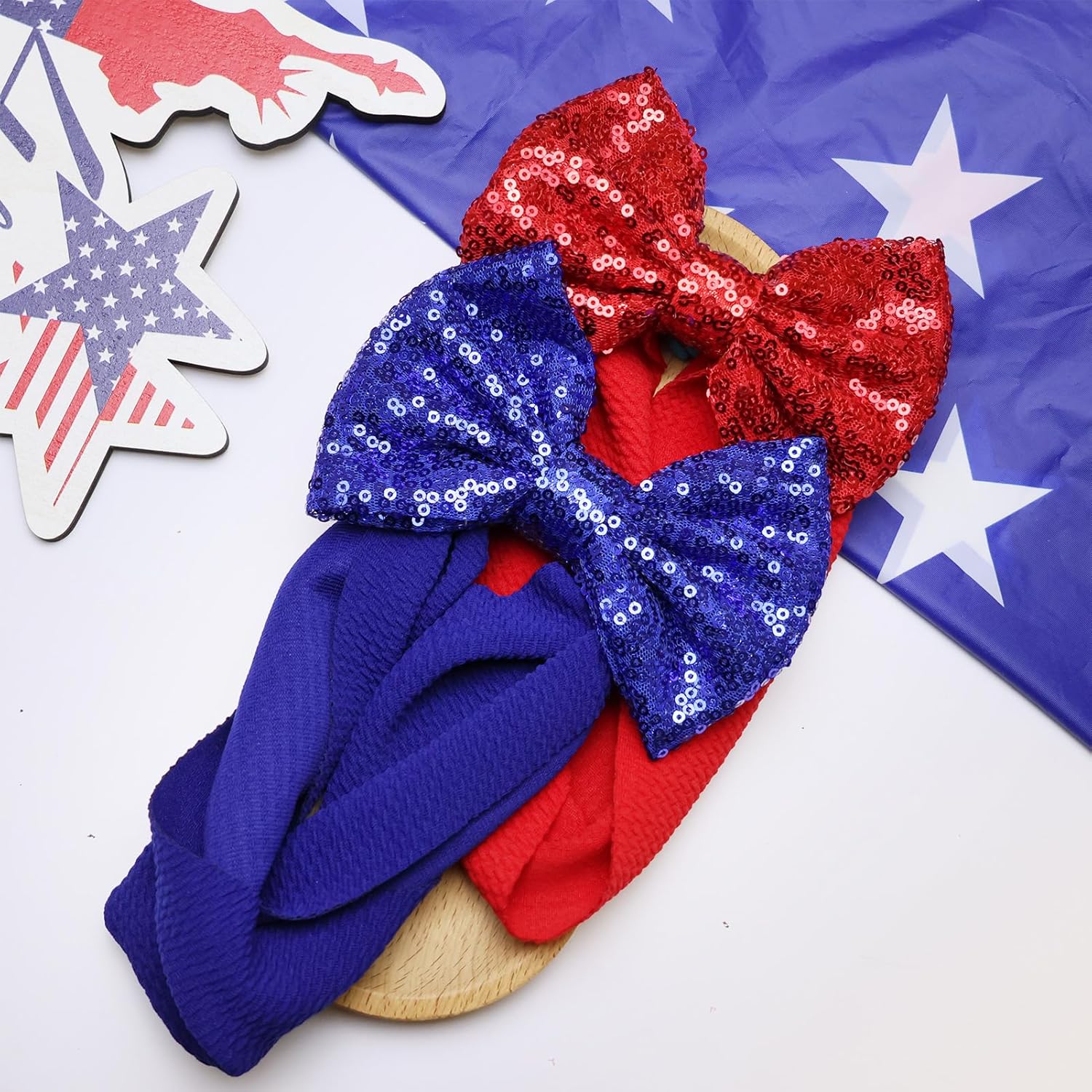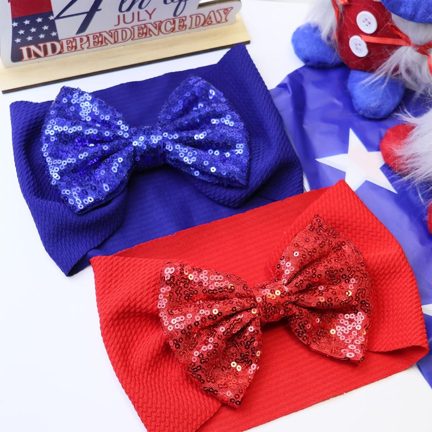 4th of July Baby Girl Bows Headbands Red Sequin Hair Bow Blue Baby Girl Elastic Wide Hairbands for Baby Girls Hair Accessories Newborn Toddler Infant Gift