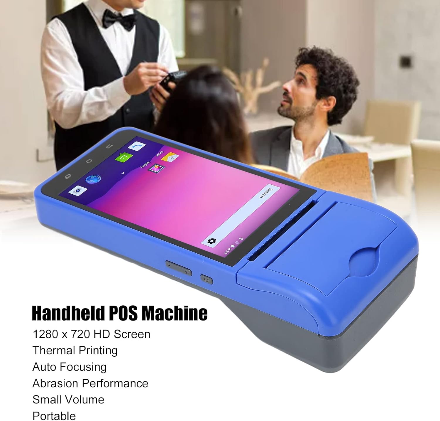 Handheld POS Machine, 1280 X 720 HD Screen Thermal Printing Auto Focusing Receipt Printer Portable Smart Mobile POS Terminal Payment Kit Ordering Machine(US)