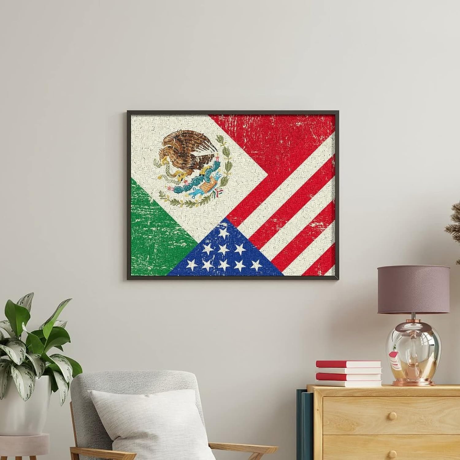 USA and Mexican Flag DIY Paint by Numbers Acrylic Painting Kits Wall Arts Pictures for Home Living Room Office Decoration