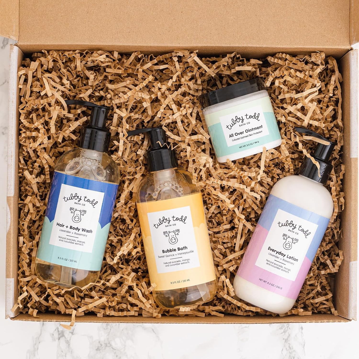 Tubby Todd Sensitive Skincare Baby Bath Kit – Baby Shampoo and Body Wash, Lotion, All Over Ointment & Bubble Bath – The Essentials Baby Bath Gift Set – Standard Size Lavender Rosemary