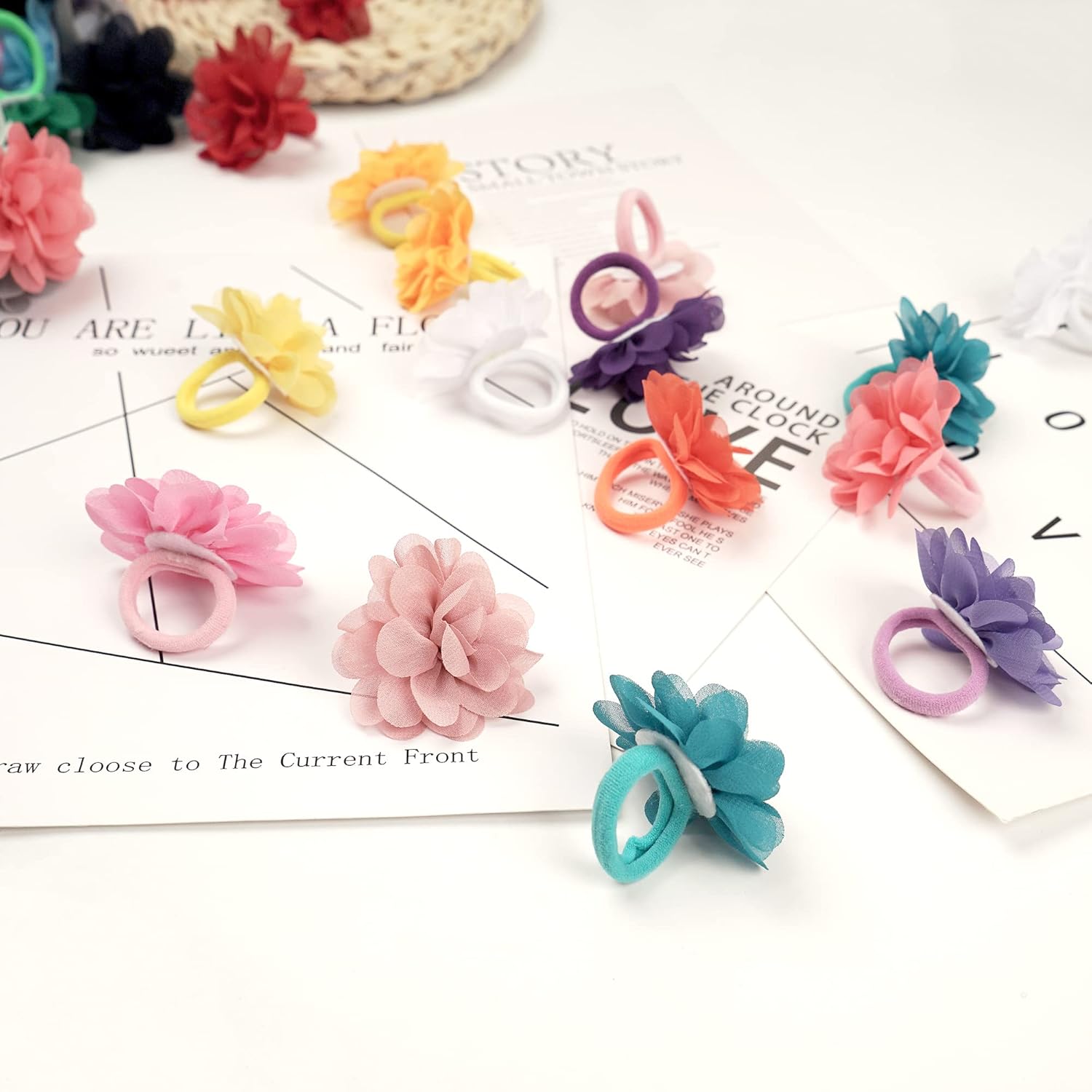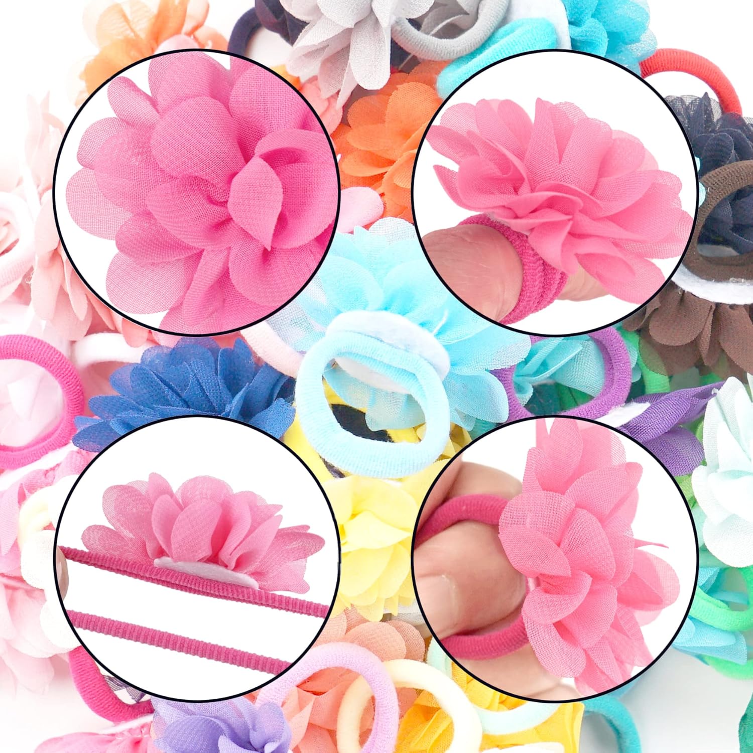 50 Pieces Baby Girls Chiffon Flower Hair Ties 2″ Elastic Ponytail Holders Hair Accessories for Girls Infants Toddlers Kids