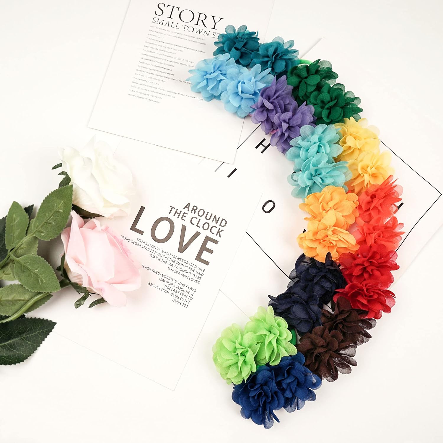 Flower diameter approx 5cm/2inch length; each beautiful chiffon flower is attached with a rubber band, which is very firm and will not fall off.