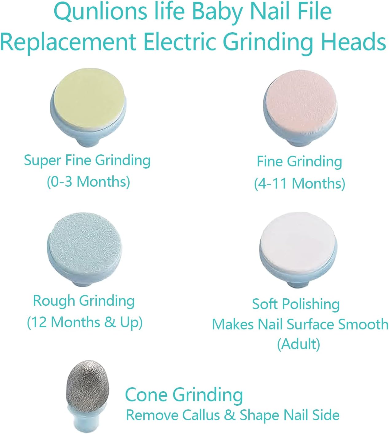 Reliable and safe: electric baby nail grinding heads are designed for baby nails, for they will not hurt their skins and nails; Besides, using grinding heads will make baby’s nails smooth and clean, without scraping skin by their own movements