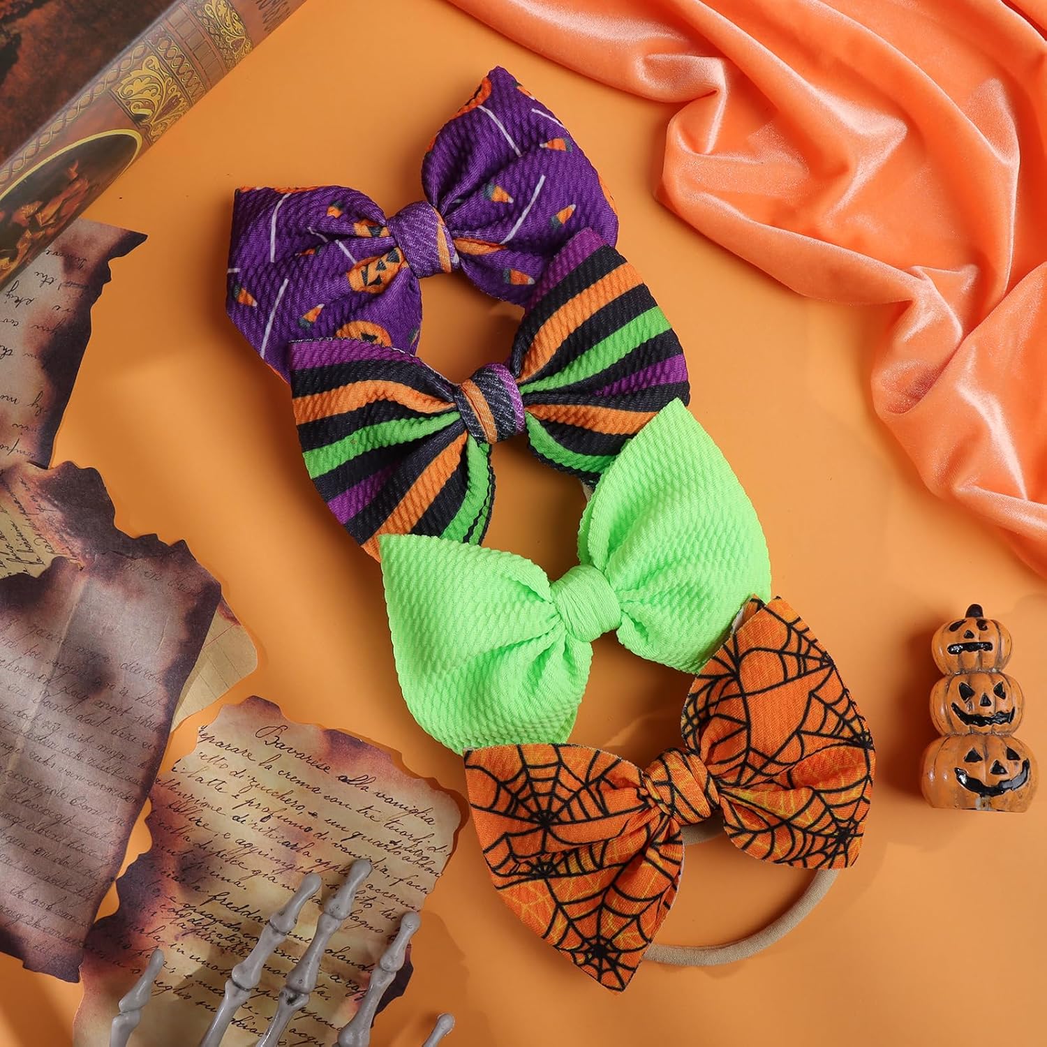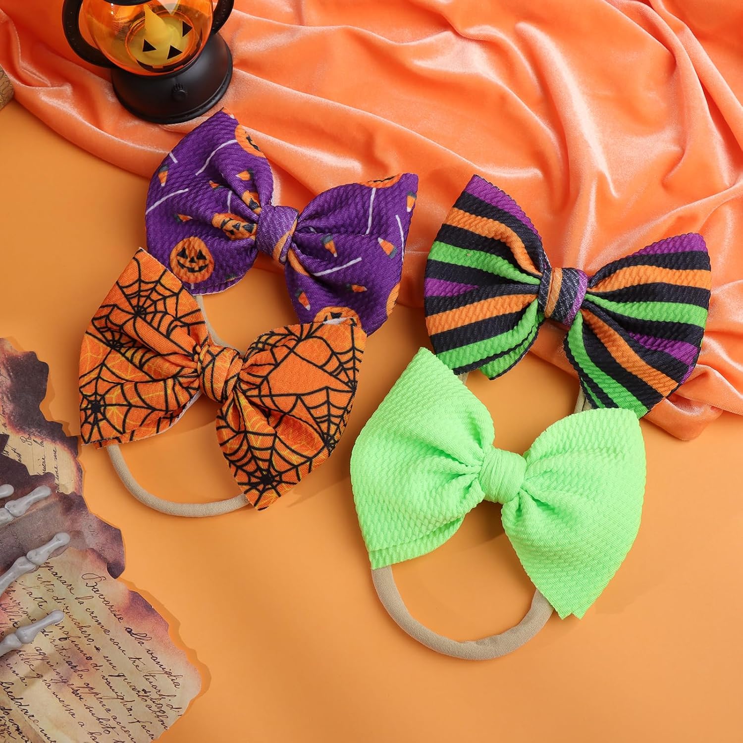 YanJie Halloween Hair Bows Headbands Baby Bows Holloween Spider Accessories Pumpkin Hairband Bow Nylon Headbands for Toddler Girls 4 Pcs