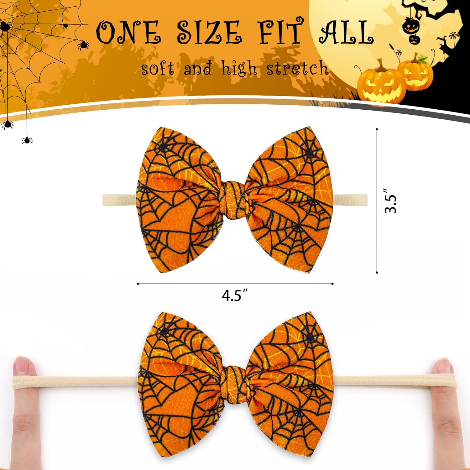 ⭐Add Festival Atmosphere: The classic pumpkin and spider pattern and festival color of the baby headband, which echoes Halloween Day, adds color to most occasions and would be a great gift for a child over the All Saint’s Day holiday.