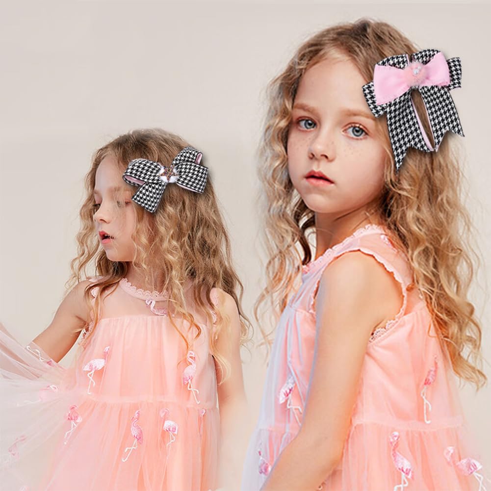 1.Toddler Hair Accessories Set:This hair accessory set consists of 6 pieces and can be paired with a variety of hairstyles. It includes 1 bow headband, 1 double layered large bow hairpin, 1 bow hairpin with sequin pentagram, 2 cute bow hairpins with small balls, and 1 soft bow hair tie. The elegant thousand bird checkered pattern is adorned with a pink bow, which looks elegant and cute.