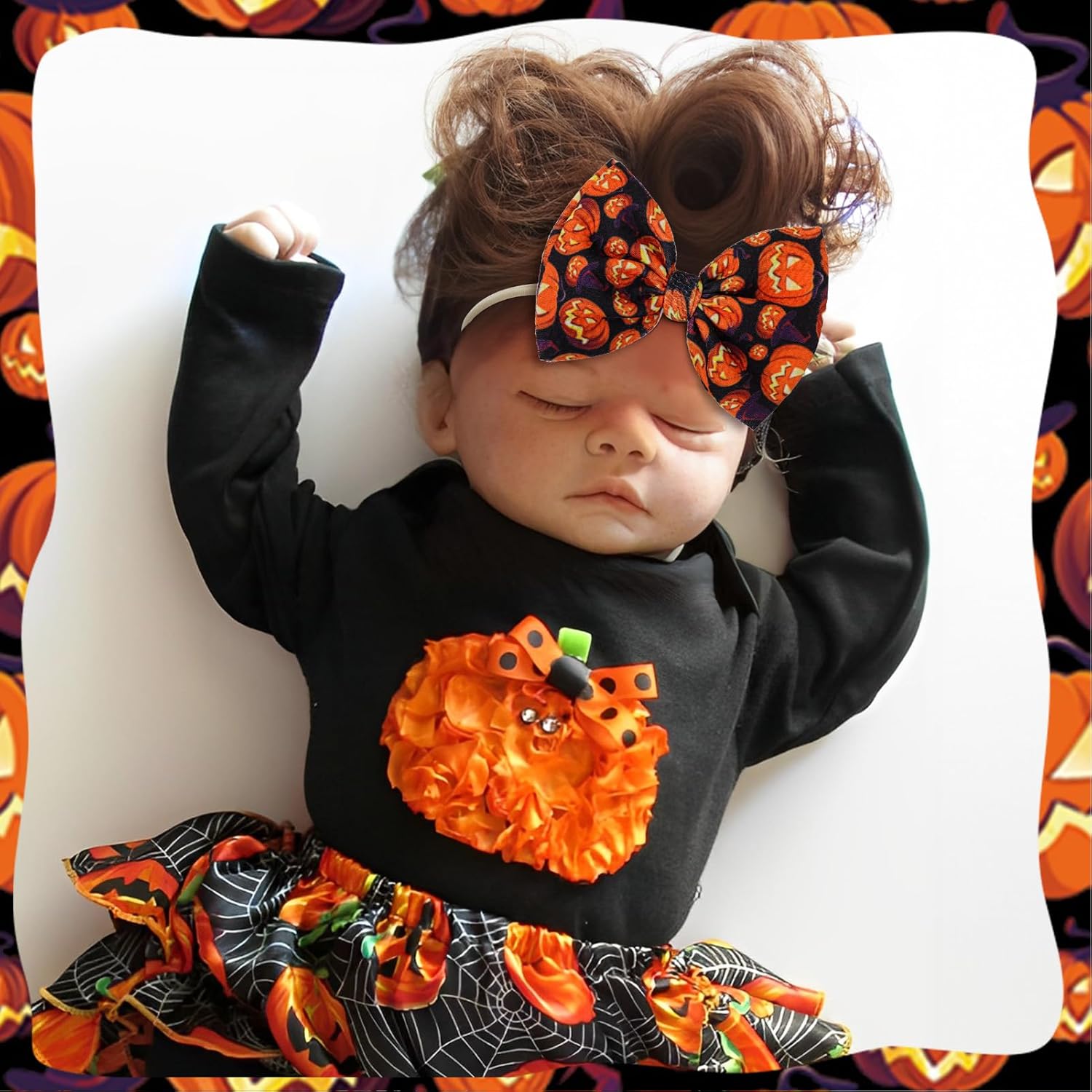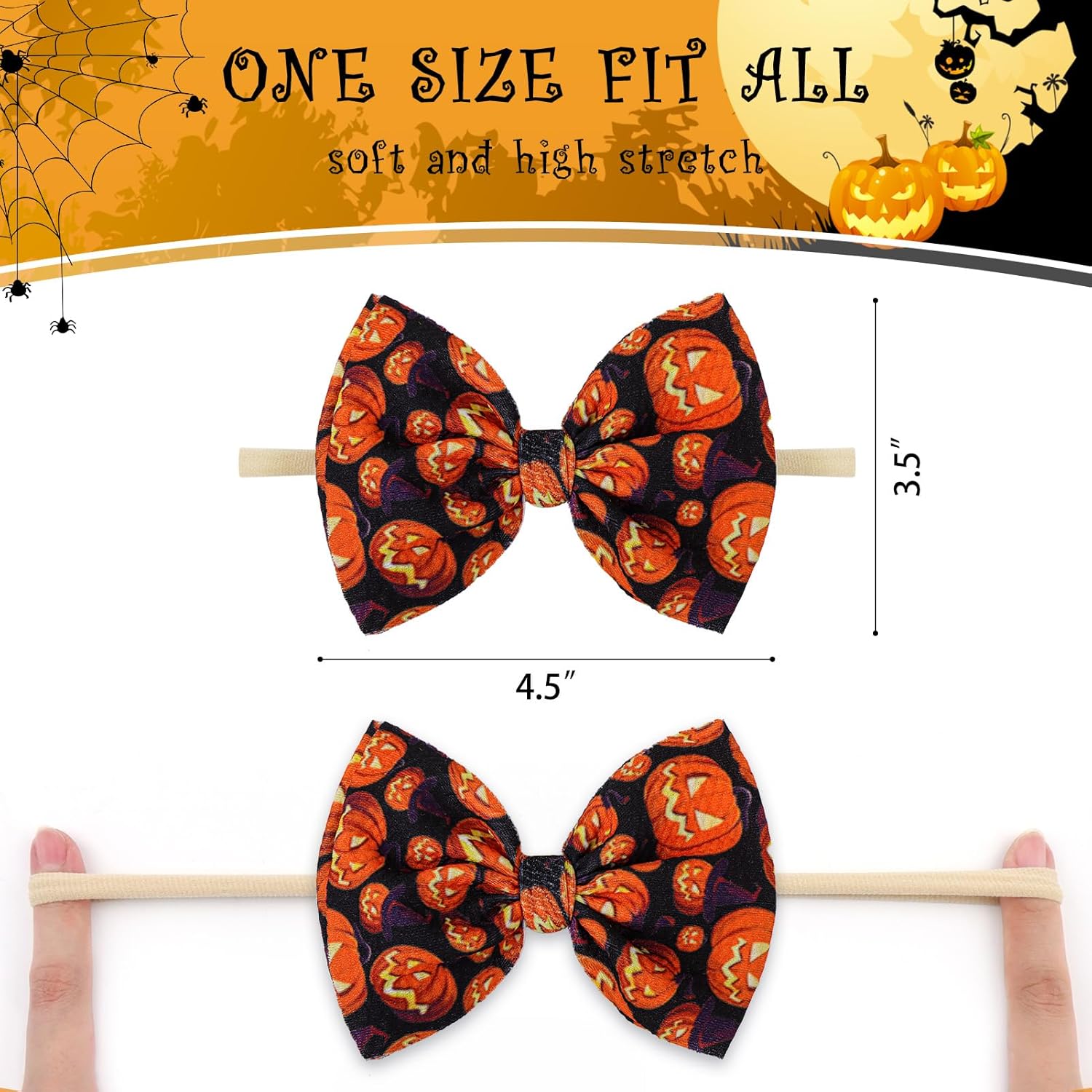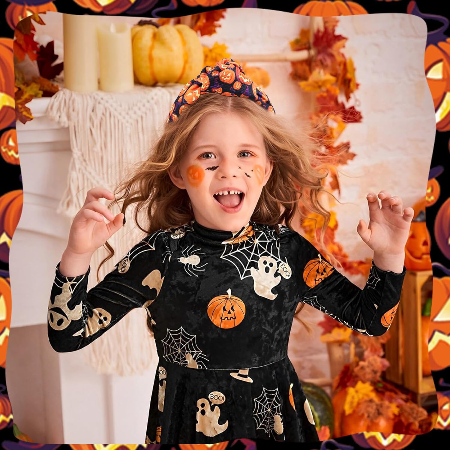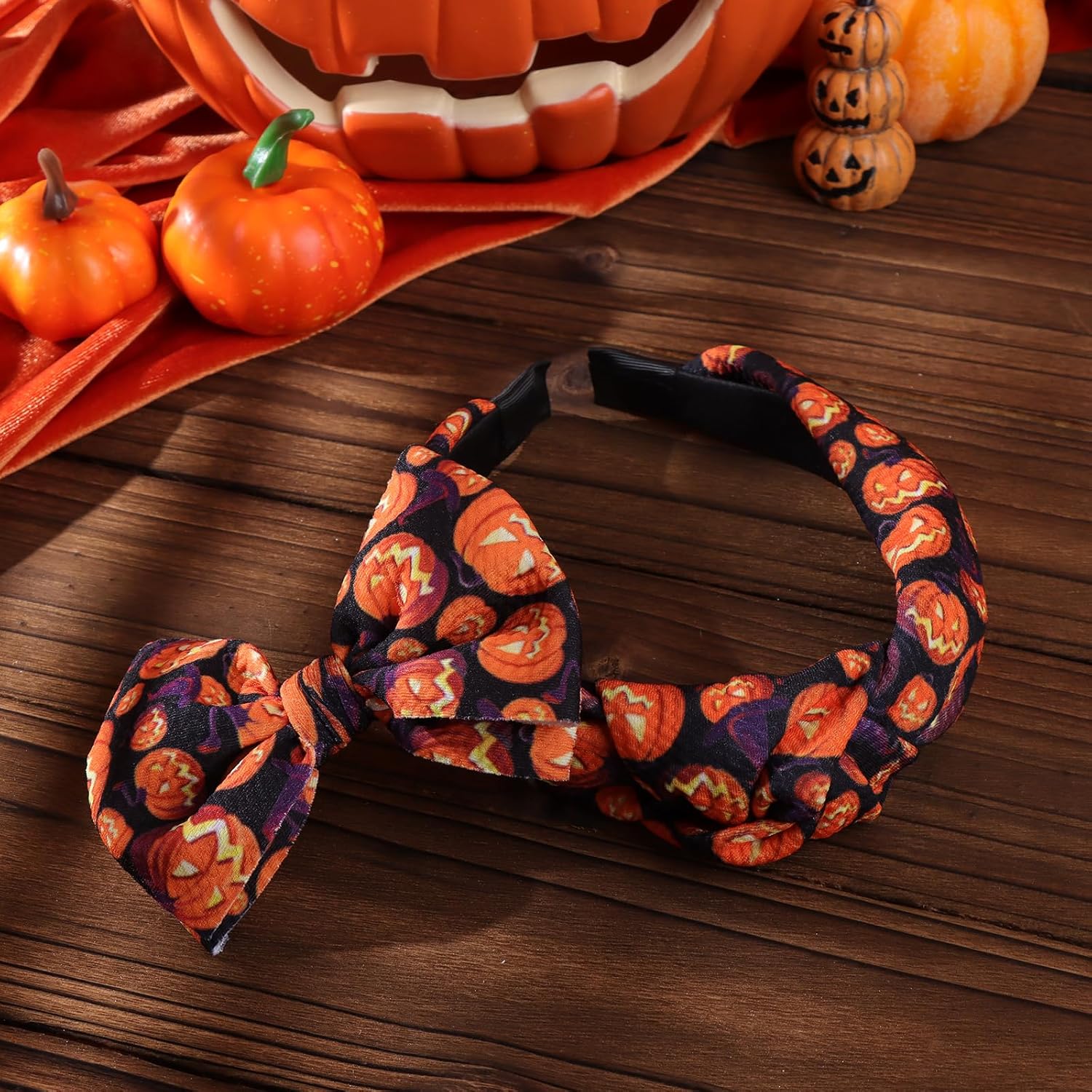 YanJie Halloween Pumpkin Headband Halloween Ghost Skull Knotted Headband for Women Girls Spider Baby Bows Headbands Hair Bows Toddler Pumpkin