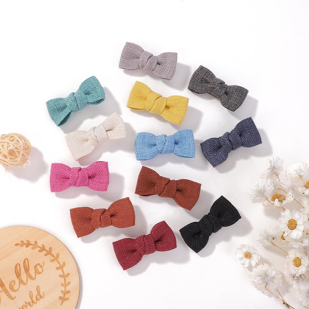 2″ Baby Linen Bow Hair Clips: 12pc Boutique Handmade Fully Lined Hair Barrettes for Girls, Toddlers, and Infants of All Ages