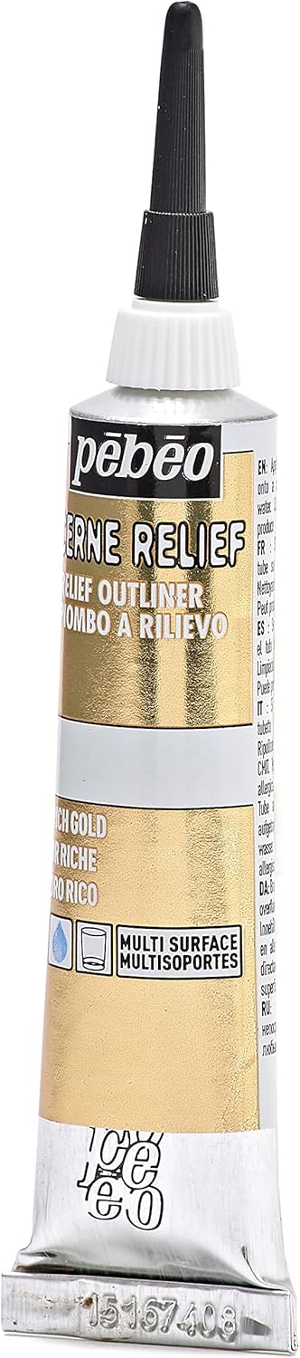 Pebeo Vitrail, Cerne Relief Dimensional Paint, 20 ml Tube with Nozzle – Rich Gold, 0.67 Fl Oz (Pack of 1)
