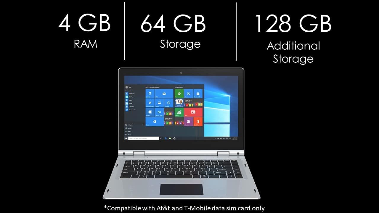 IVIEW Megatron 4G LTE 14.1″ Touch Screen, 1920 × 1080 IPS High Resolution, Intel Celeron Dual Core 4GB/64GB Storage 360° Convertible Laptop