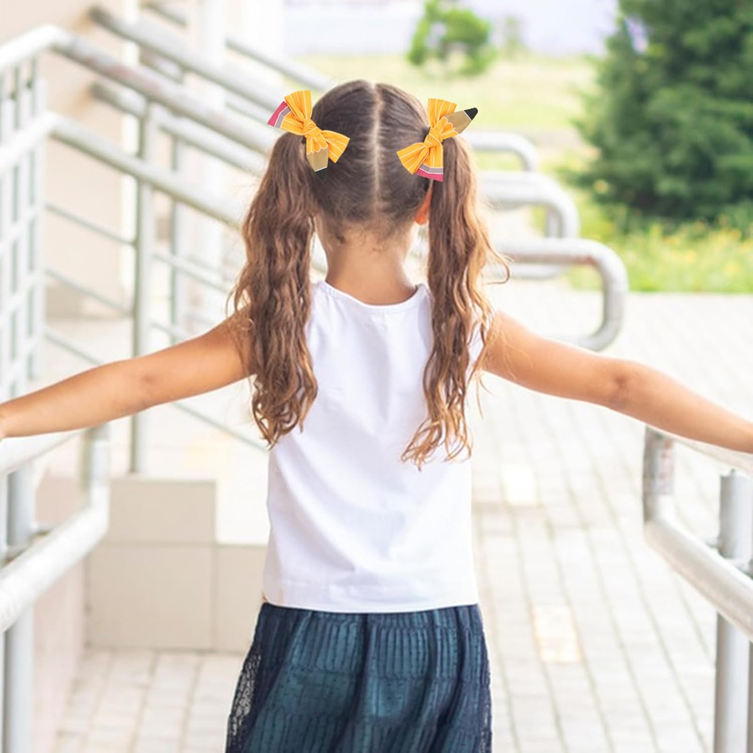 ❤️𝐃𝐞𝐬𝐢𝐠𝐧: Each hair clip features a cute bow design in vibrant yellow colors and pencil patterns that are perfect for the back to school season. Adding a charming and playful touch to any hairstyle.