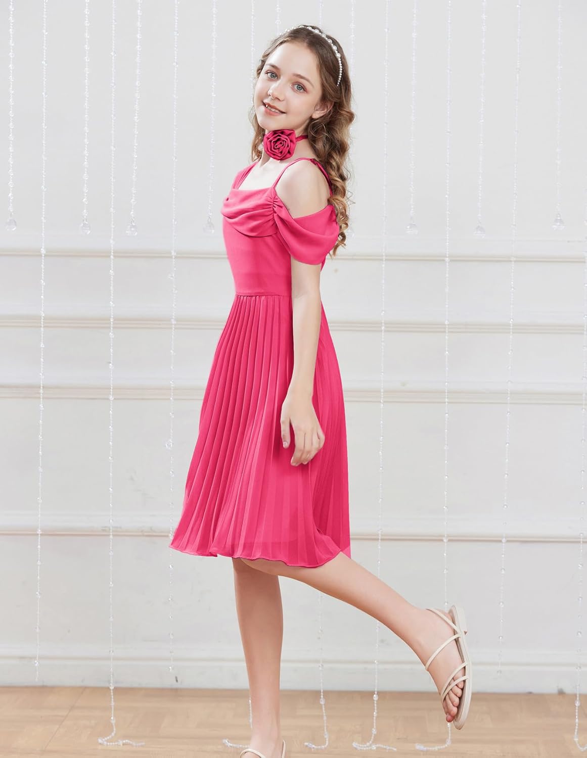 GRACE KARIN Girls Dress Off Shoulder Flower Girl Pleated Birthday Party Formal Dance Dresses Size 5-12
