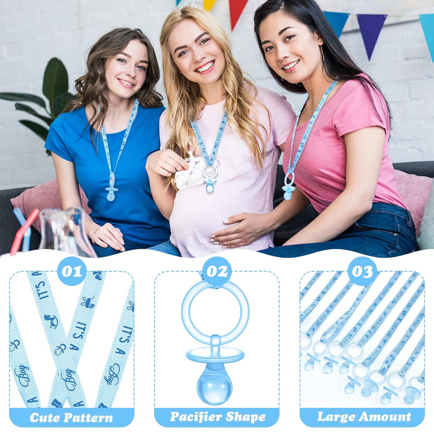 Widely Application: the pacifier is suitable for parties, team games and daily wear; It can also be applied to decorate baby shower parties, birthday parties, party tables, gift bags, or as hanging decorations to add more charm and beauty to your party or room