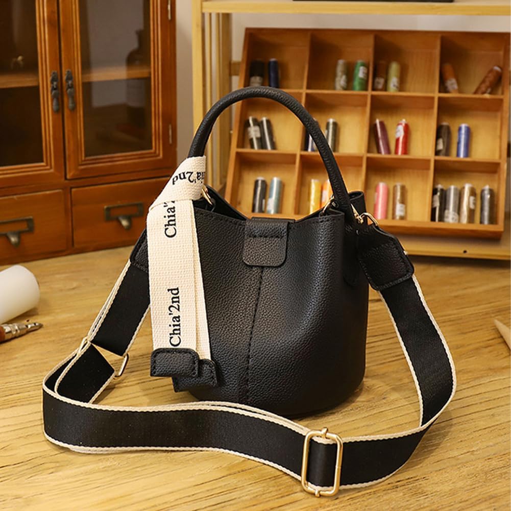 WADORN DIY PU Leather Bag Making Kit for Women, Handbags Sewing Kit for Adult DIY Bucket Bag Making Kit with Lined Pockets DIY Purse Cross Leather Craft Bag Making Supplies, 6.6×6.6×6.6 Inch, Black