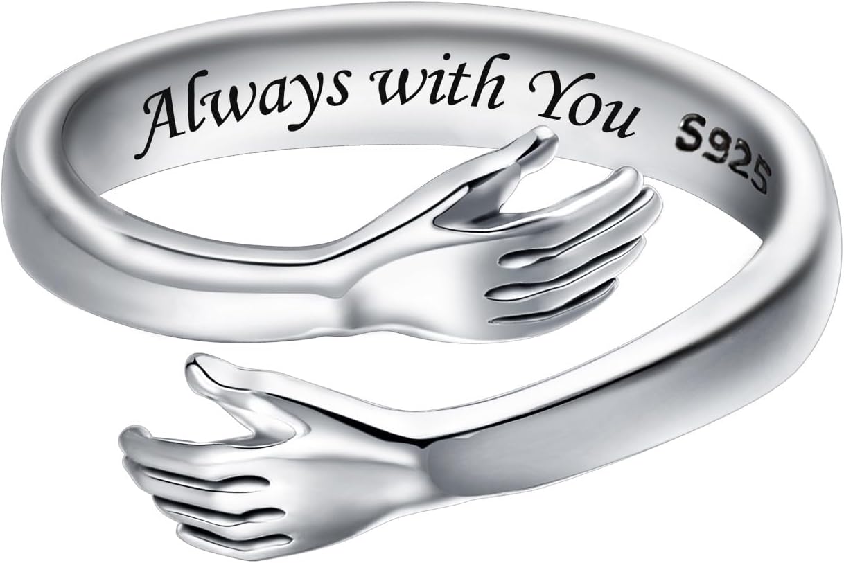 LOVECOM S925 Sterling Silver Hug Rings for Women Teen Girls Adjustable Hugging Hands Open Ring for Men Promise Rings Jewelry Birthday Farthers Day Gifts for Dad Mom Wife Daughters Grandma Best Friend