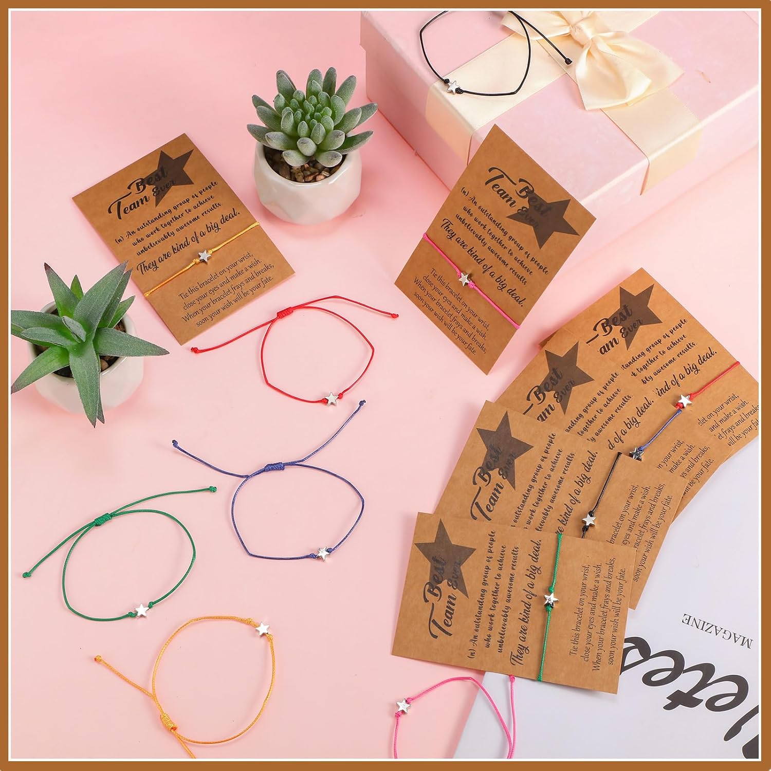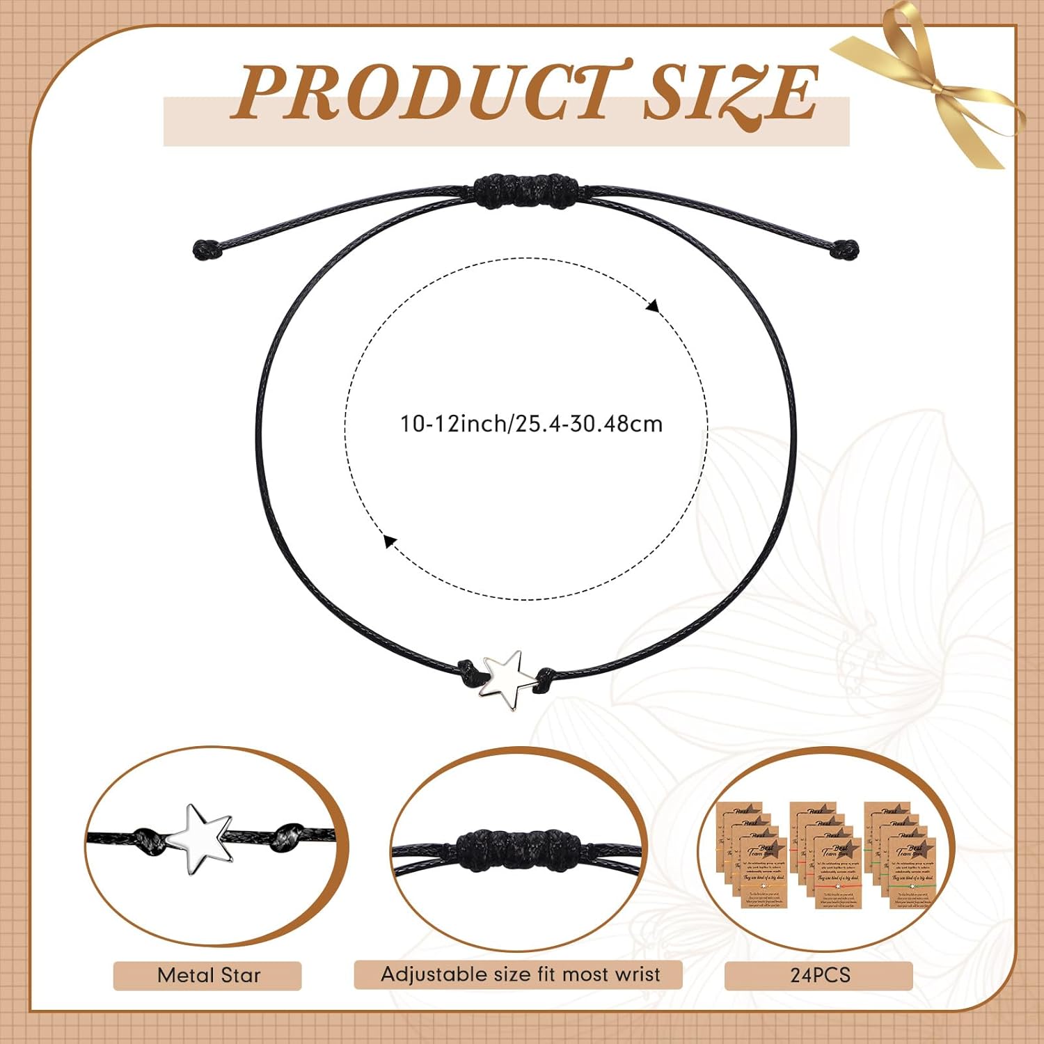 24 pcs Star Shape Bracelet Set with Make a Wish Card Christmas Employee Appreciation Gifts Adjustable Inspirational Bracelet Cord String for Women Girls Jewelry Gifts