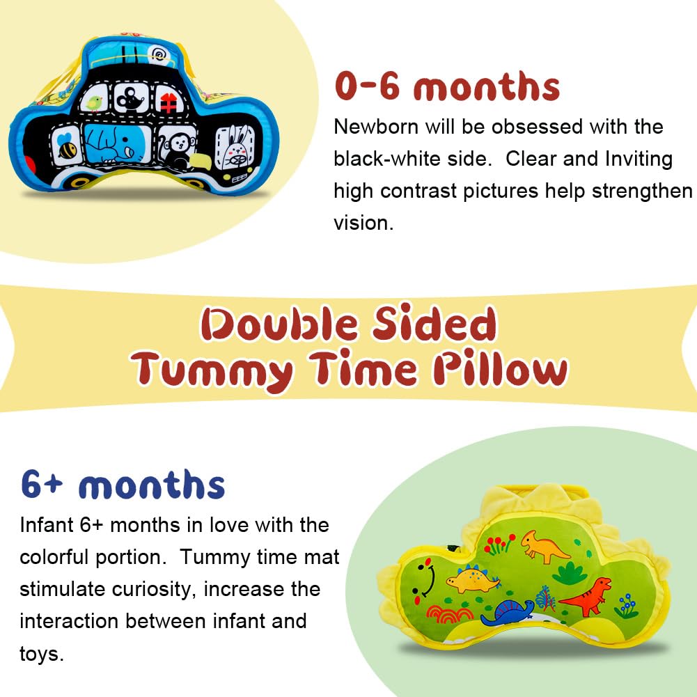 【Black and White High Contrast Baby Toys】Double sides tummy time pillow with high contrast pattern. Newborn 0-6 months will be obsessed with the black-white side and infant 6+ months in love with the colorful portion. Clear and Inviting high contrast pictures help strengthen vision. This enables your baby to progress in a natural development.