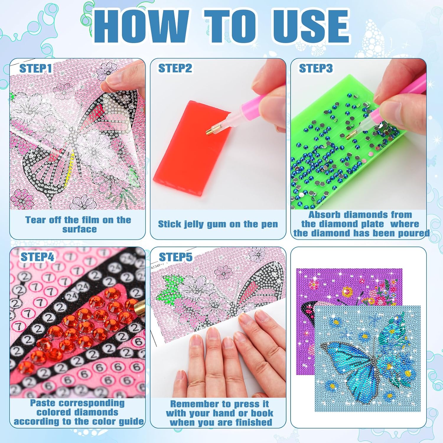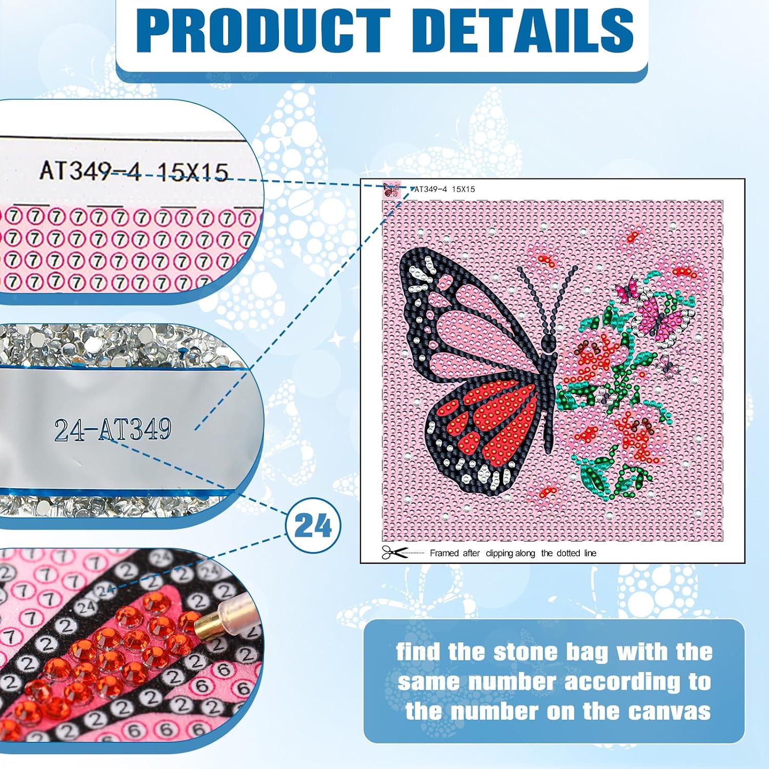 All-in-one Package: our diamond art kit can meet most needs in the creative process; Size: 6 x 6 inches/ 15 x 15 cm; In addition to the 9 pieces of butterfly canvas, you also get 3 diamond plates, 6 jelly gels and 3 point pen to ensure diamond placement and long-lasting for the future; Maintains shine for years