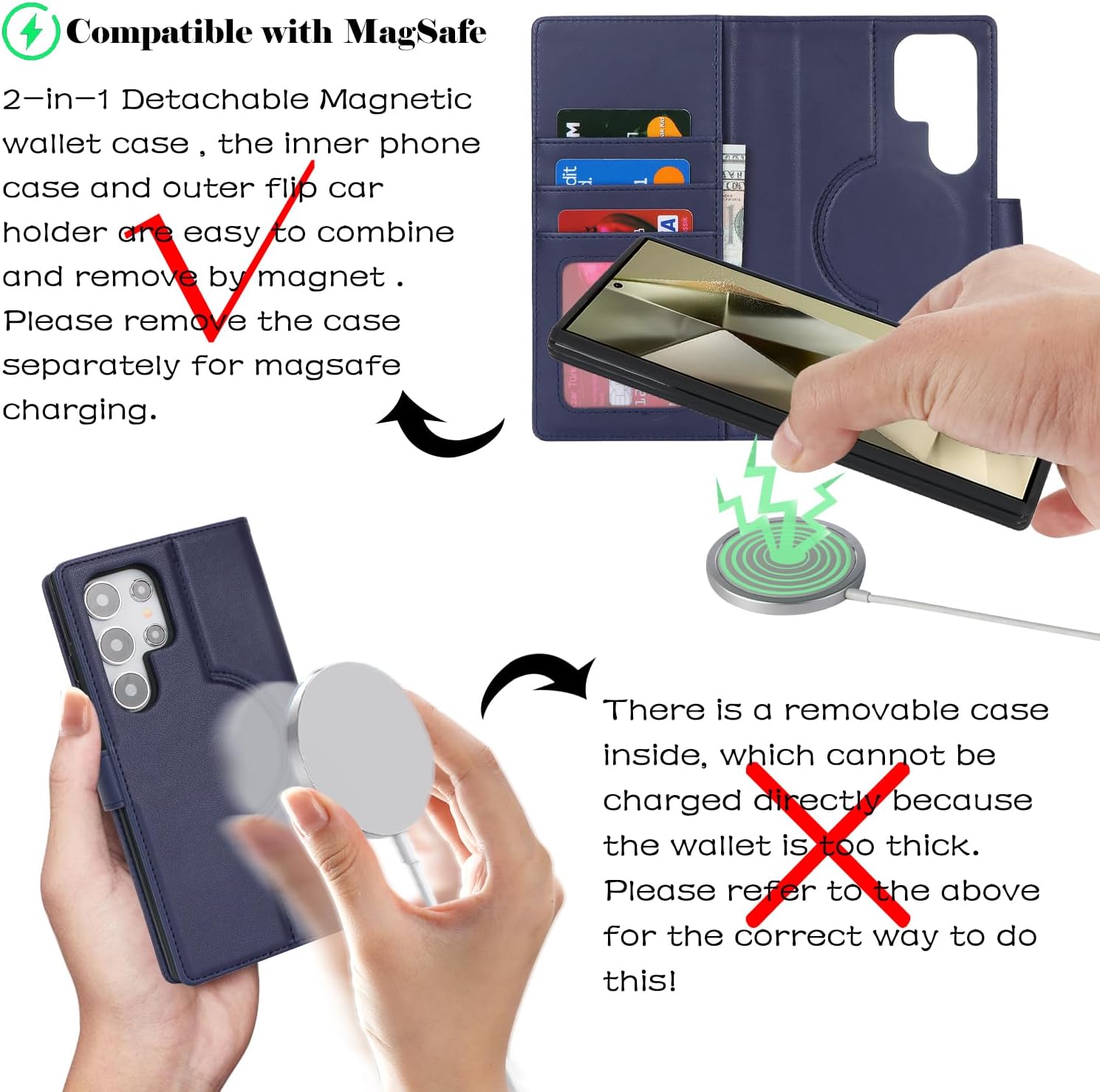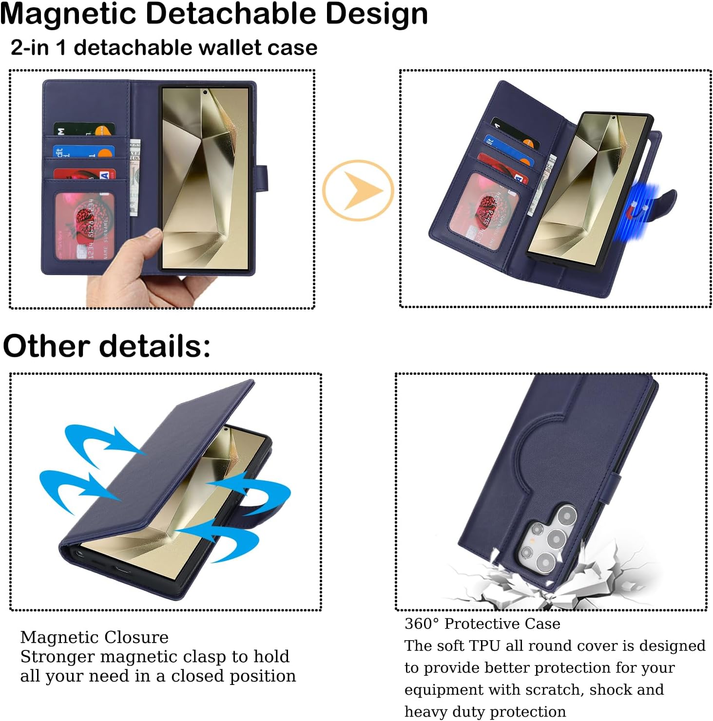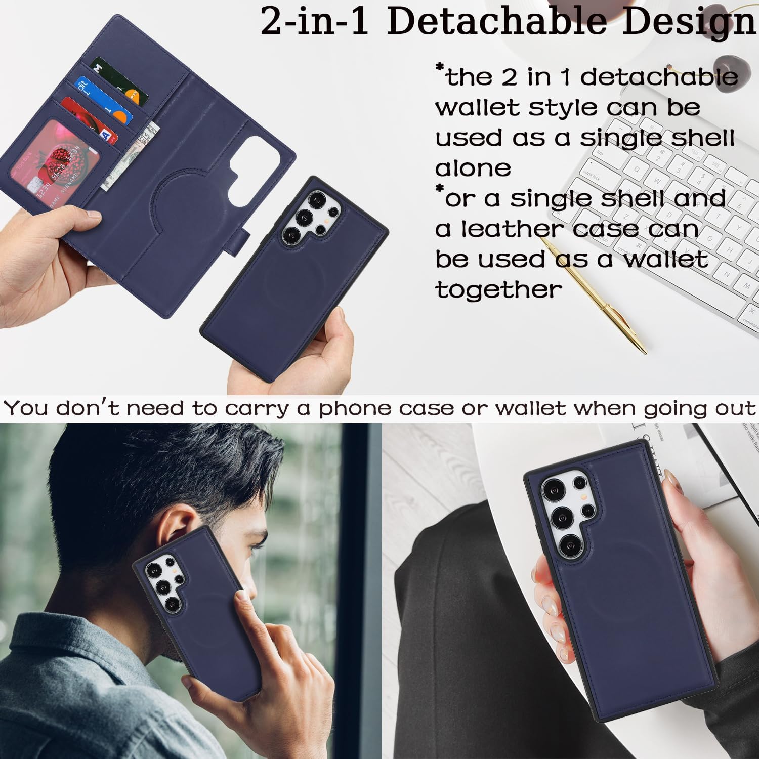 Havaya for Samsung Galaxy s24 Ultra case Wallet Detachable Magnetic Phone case with Card Holder Compatible Magsafe Leather Flip Folio case Stand Removable Shockproof Cover for Men and Women-Blue