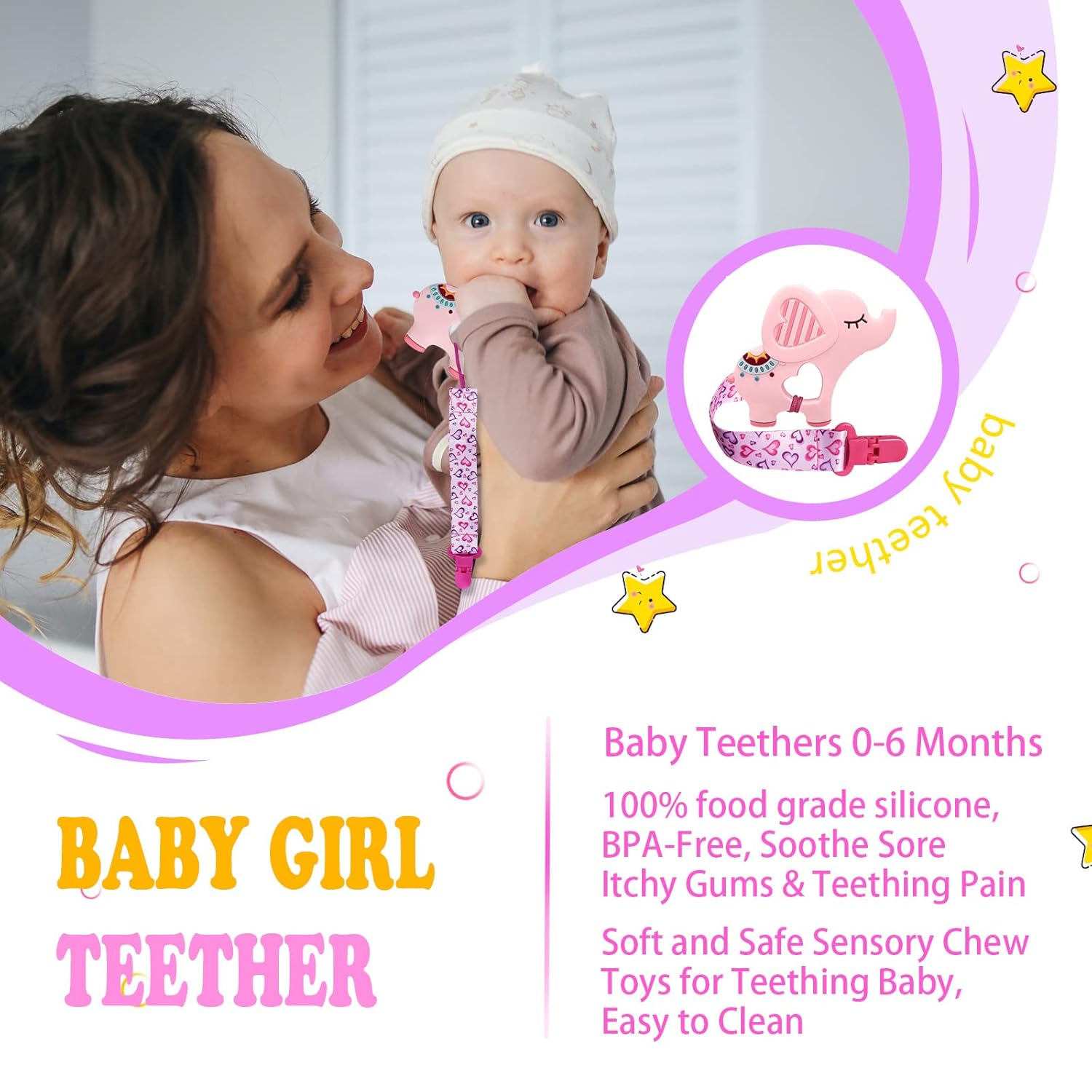 Baby girl teether made of food grade silicone. Free of BPA, Phthalates, PVC, Latex and Lead.This means that you don’t have to stress about your kids chewing them