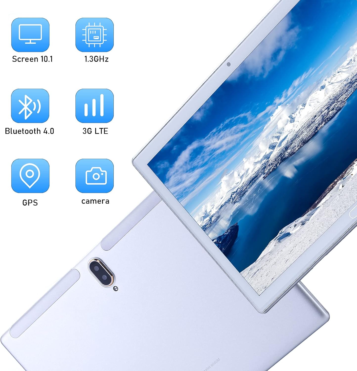 10.1 inch Android 10 metal ultra-thin flat panel dual SIM card slot 2.5D flat glass touch screen 2GB RAM 32GB ROM 3G Phablet built-in Bluetooth WiFi GPS tablet with (Silver)