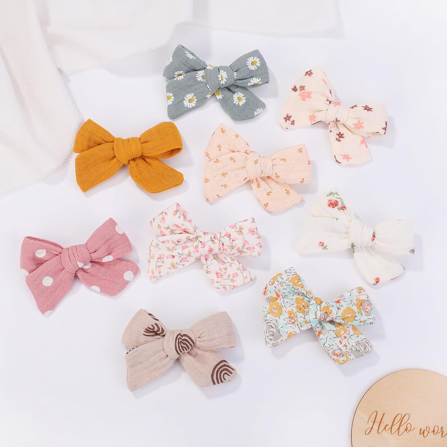Stylish and practical design:The baby bows set includes 10 pieces of baby hair clips, featuring a delightful blend of Floral Embroidery Hair Clips and Solid Color Hair Clips. Our boutique handmade hair bow clips will make your little girls’ every day dressing more charming.