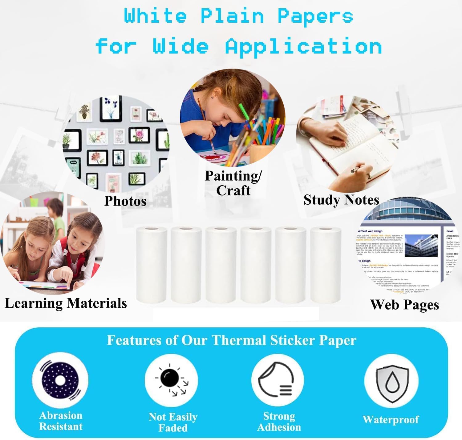 đ§»ăWidely UseăThe mini thermal printing paper for DIY creation, photos printing, notes, list for “shopping/TO DO”, texts, room decoration, gift card, work plan and other printing as you want. It can also be used as fax paper, thermal instrument recording paper, printing paper used for cash registers and POS printers, cameras.