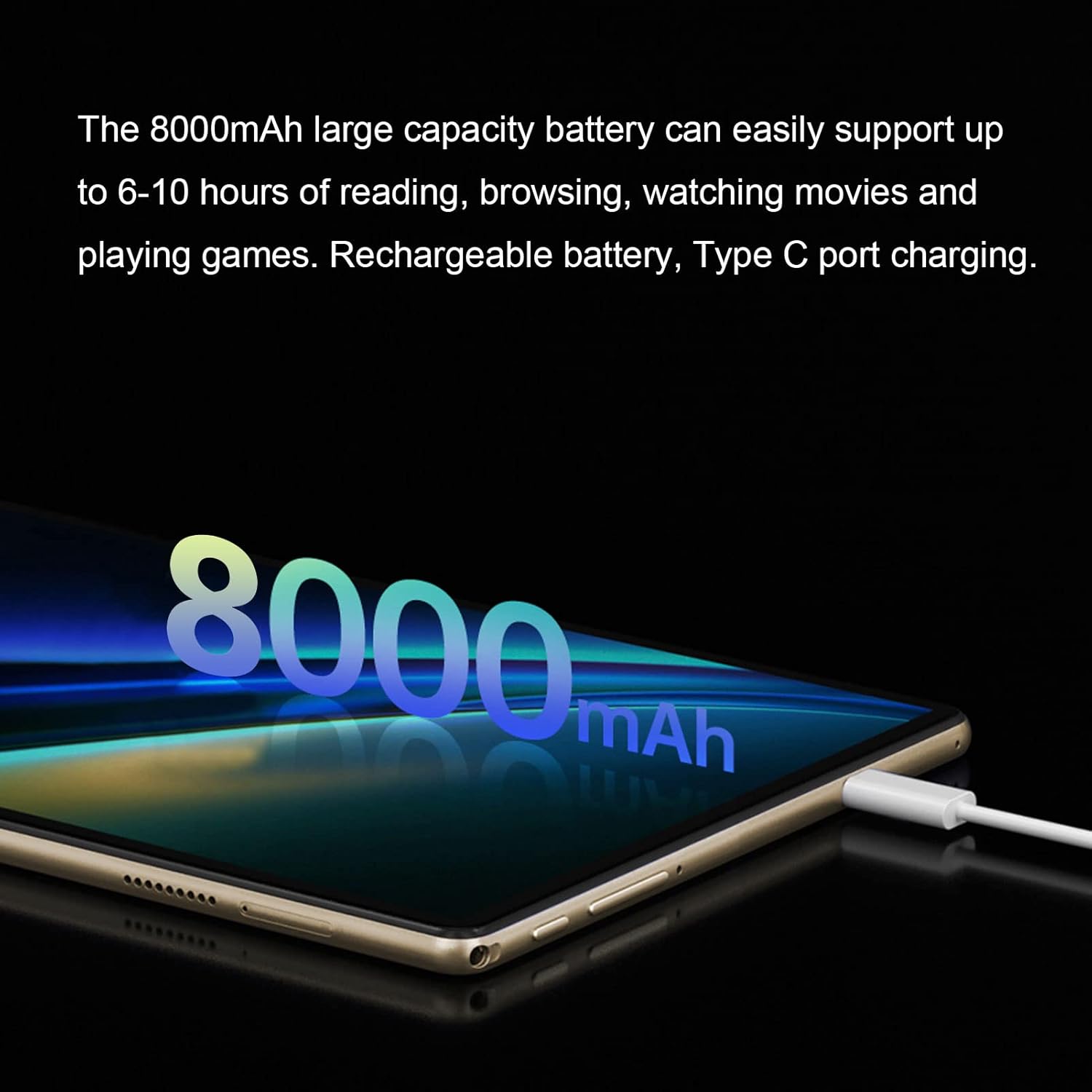 Long Lasting Battery: The 8000mAh large capacity battery can easily support up to 6‑10 hours of reading, browsing, watching movies and playing games. Rechargeable battery, Type C port charging.