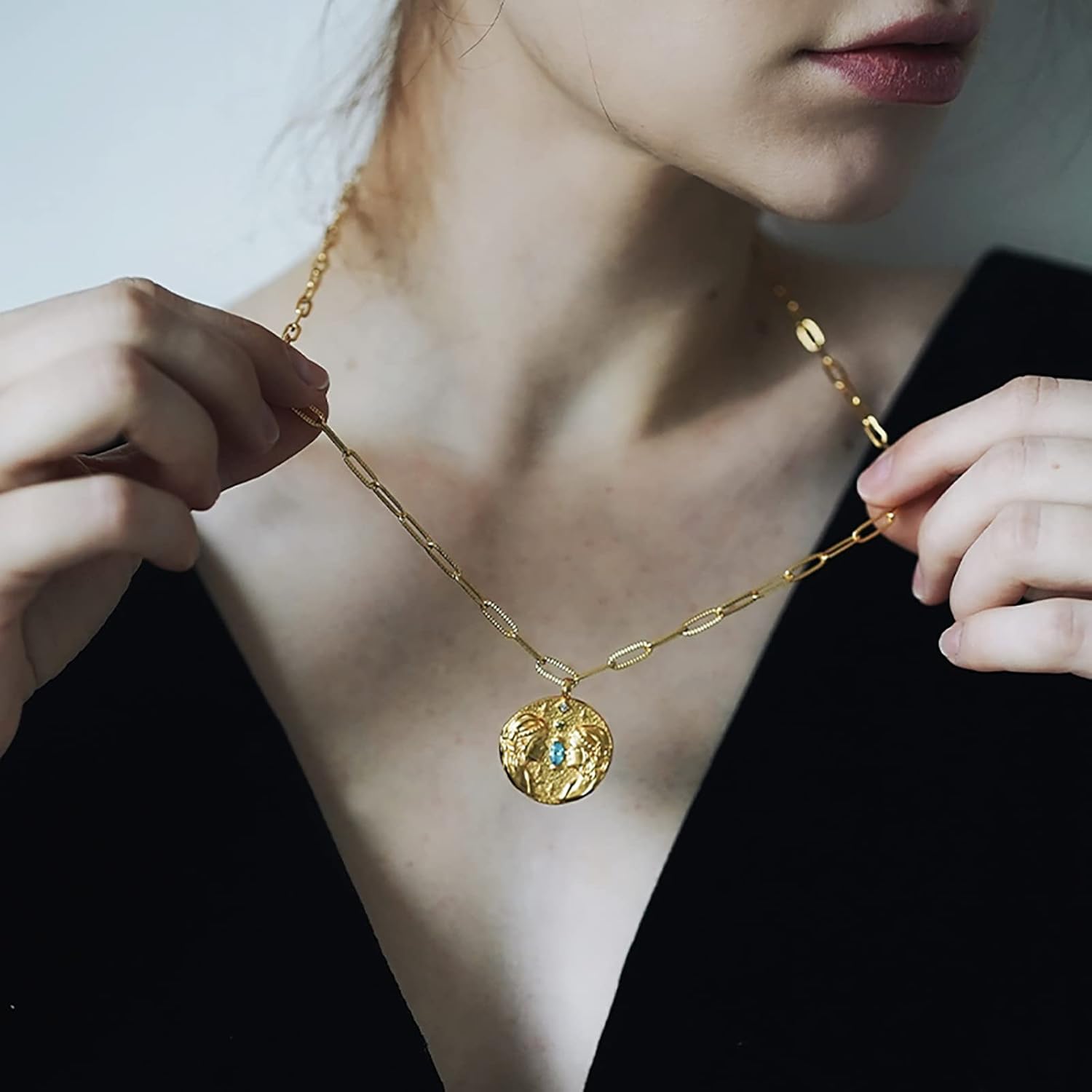 Be the first to review “12 Constellation Necklace Lucky Zodiac Personalized Necklace 18K Heavy Gold Plated Paperclip Chain Necklace with Crystals and Gemstones Double Sided Coin Necklace Birthday Day Gifts for Women Girls”