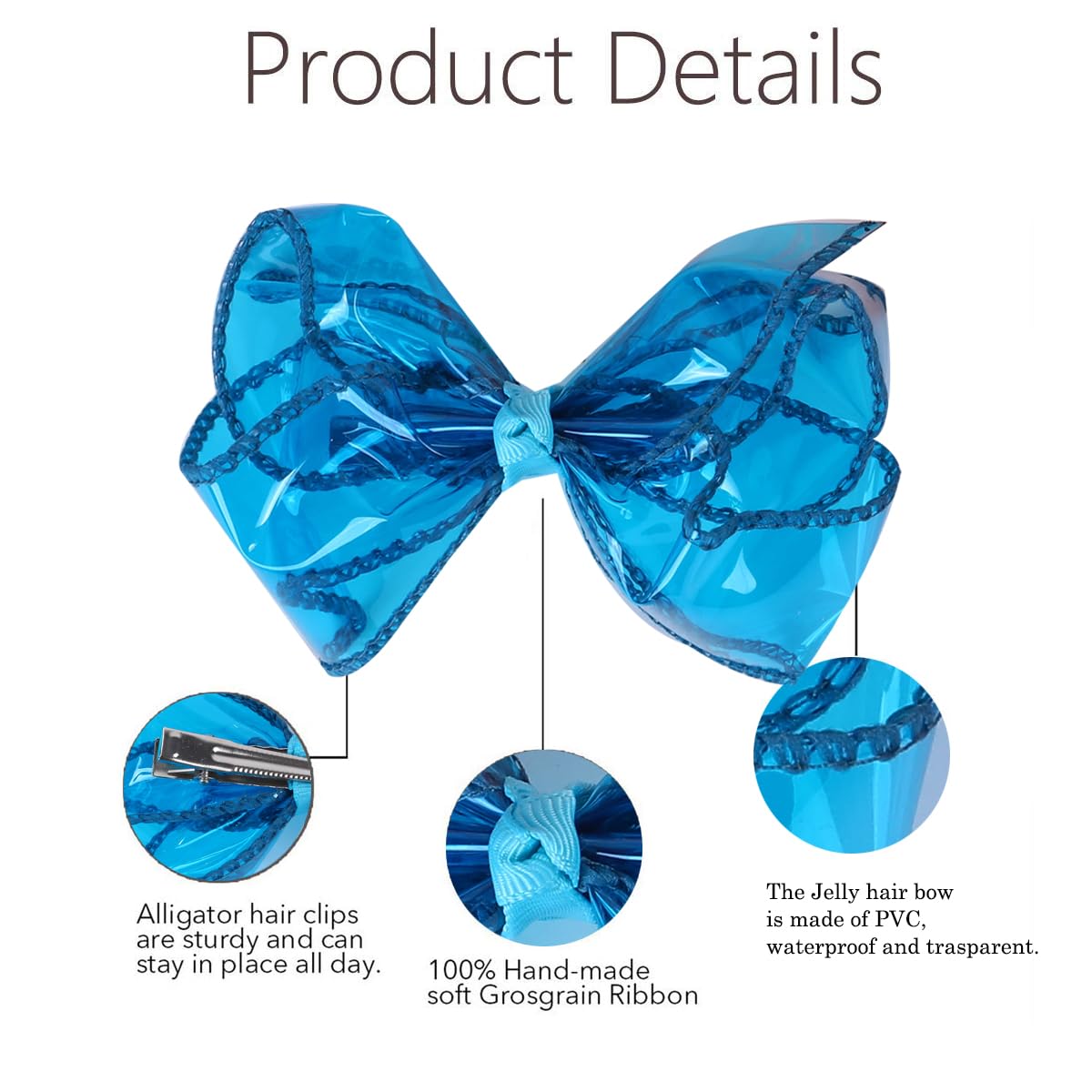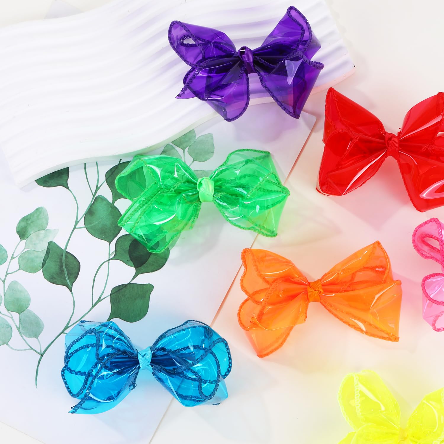💖Jelly Bow💖The bows for girls is 4 inches. Made of soft, waterproof PVC material, these jelly hair clips are durable, fade-resistant, easily stick to your hair and stay on all day.