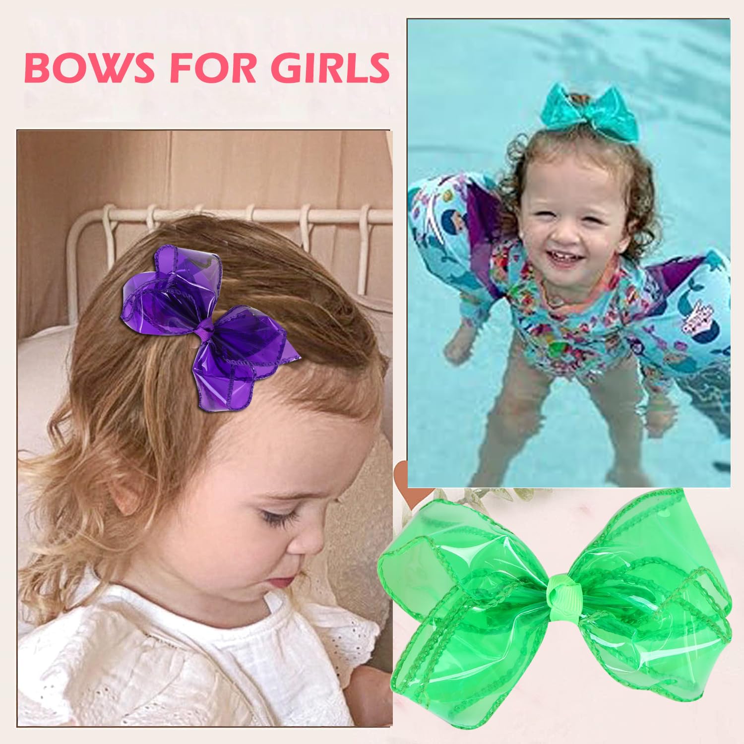 12Pcs Waterproof Jelly Hair Bows For Girls,PVC Summer Swim Pool Bow Clips Transparent Hair Accessories for Girls Toddler Infants Kids Teens Children (12pcs bows B)