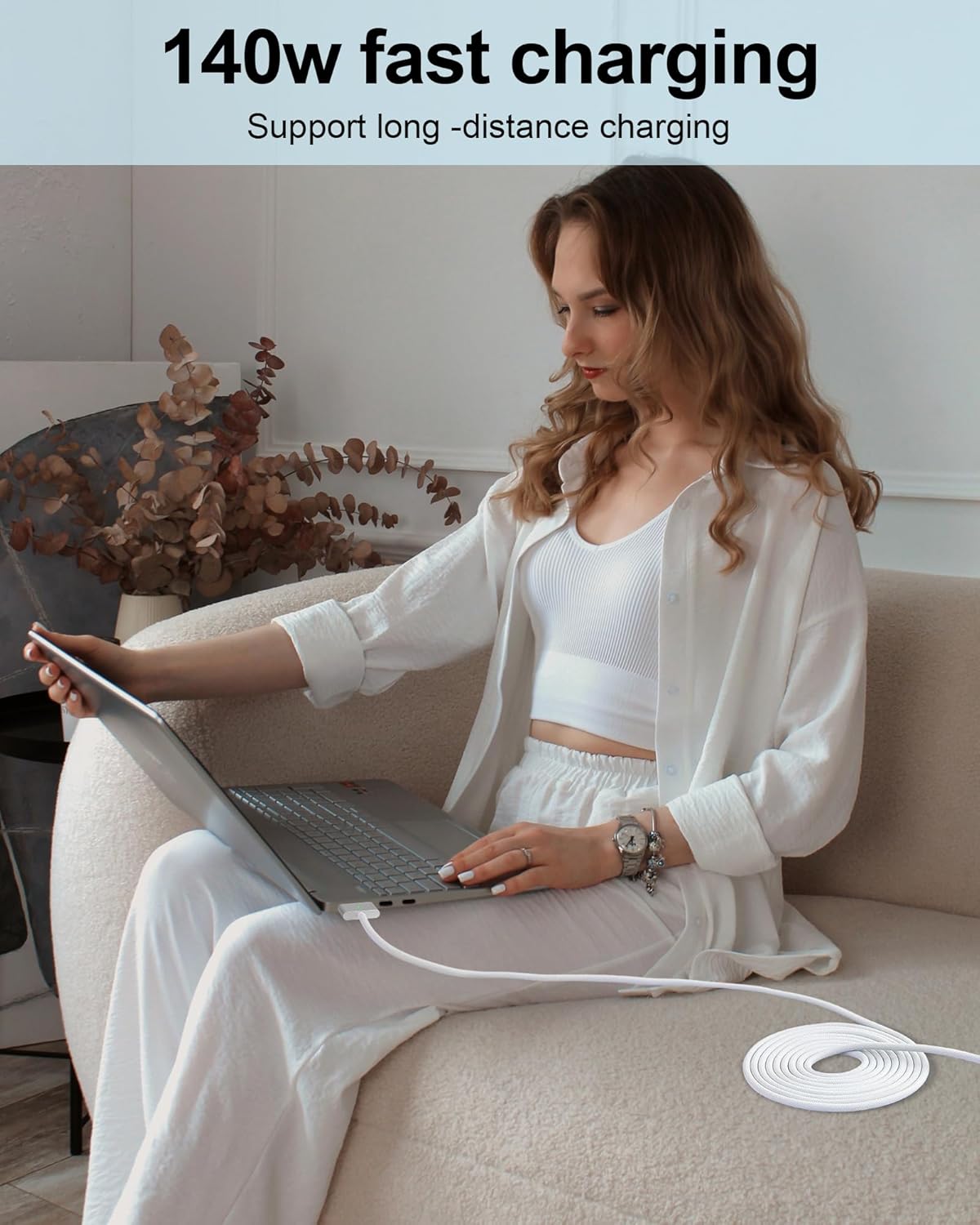 The magnetic design of this cable ensures that it attaches easily and securely to your MacBook, preventing accidental disconnections, and making it a breeze to connect and disconnect.