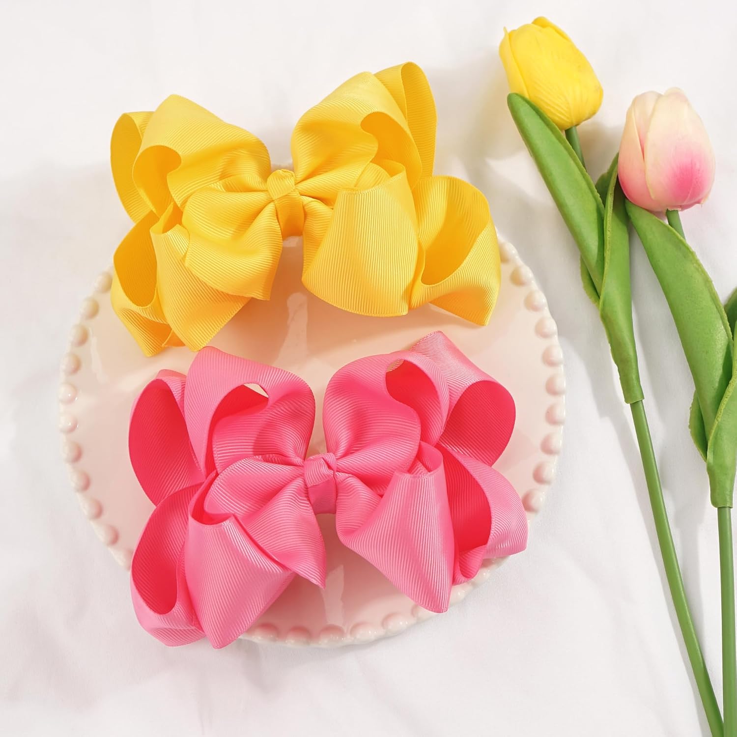 Colors: You will get 15 different color hair bows clips for girls. These 6inch big hair bows fit all ages: infants, toddlers, children and big girls, women. Every color is bright and easy matching