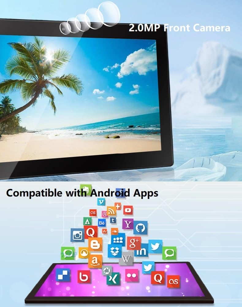 Versatile All-in-One PC: Please power on for using. Use for internet browsing via WiFi/LAN, POS system, restaurant menu screen, headrest tablet, or home calendar clock. Enjoy built-in speakers, webcam for music, videos, games, and video calls.