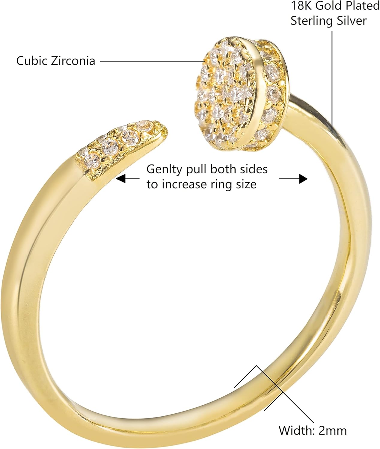 18K Gold Plated Sterling Silver Pave Open Nailed It Ring Stackable Wedding Band with Cubic Zirconia