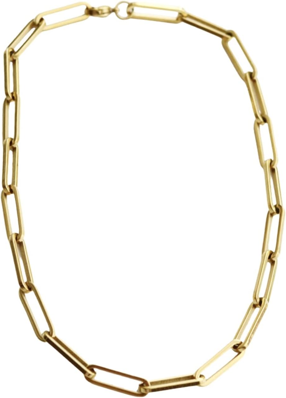 18K Gold Plated Titanium Thick Paperclip Chain Necklace, Minimalist Style, Bold Chunky Paper Clip Chain Necklace, Short Necklace, Never Tarnish