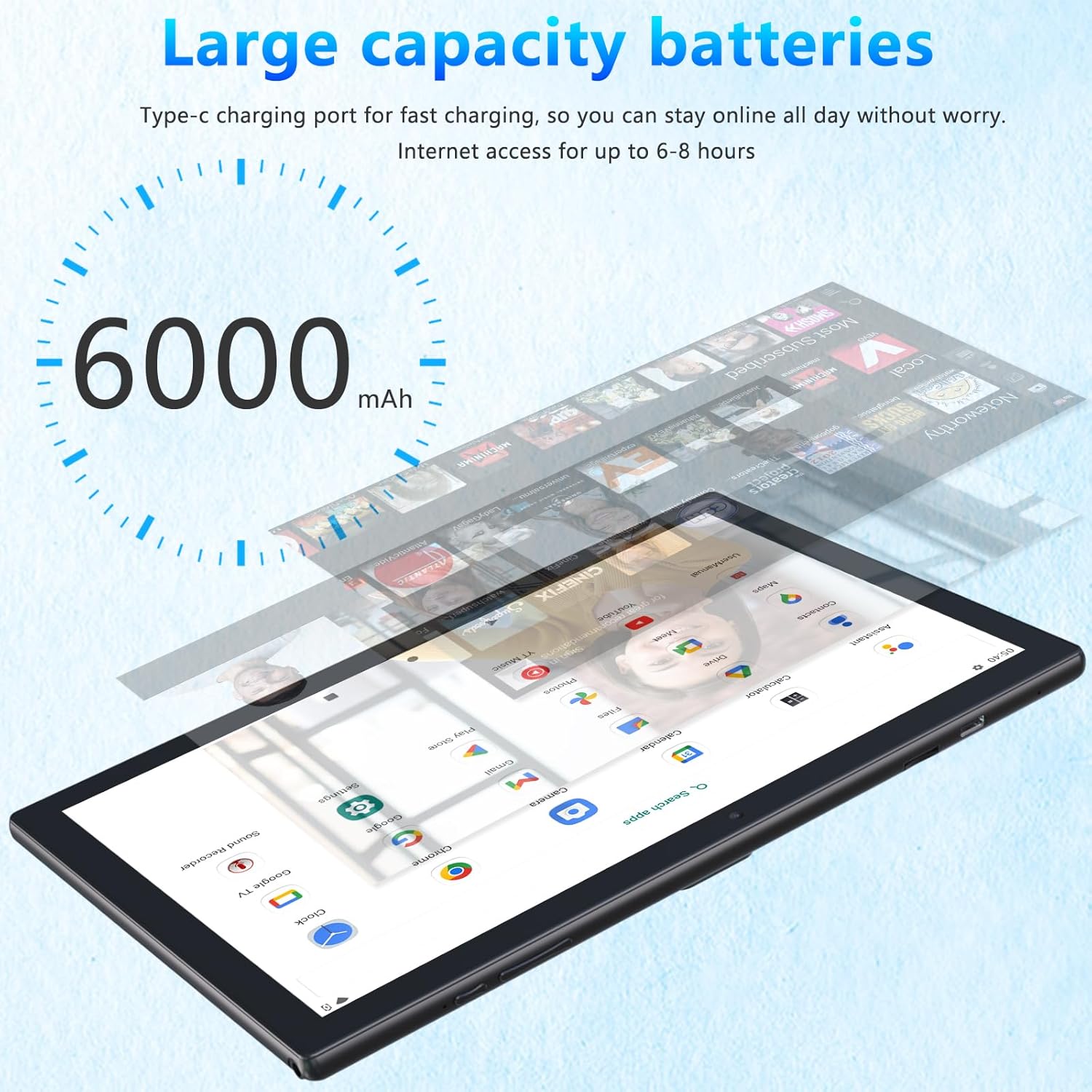【GMS Google Certified】 Android 13 tablet 10 inch is certified by Google, ensuring that you can access all of your favorite Google apps and services, including Google Play Store, Facebook, Twitter, YouTube, Tiktok, WhatsApp, G-mail, Skype, Disney+, Netflix, Line, Instagram, ZOOM and more brilliant apps.