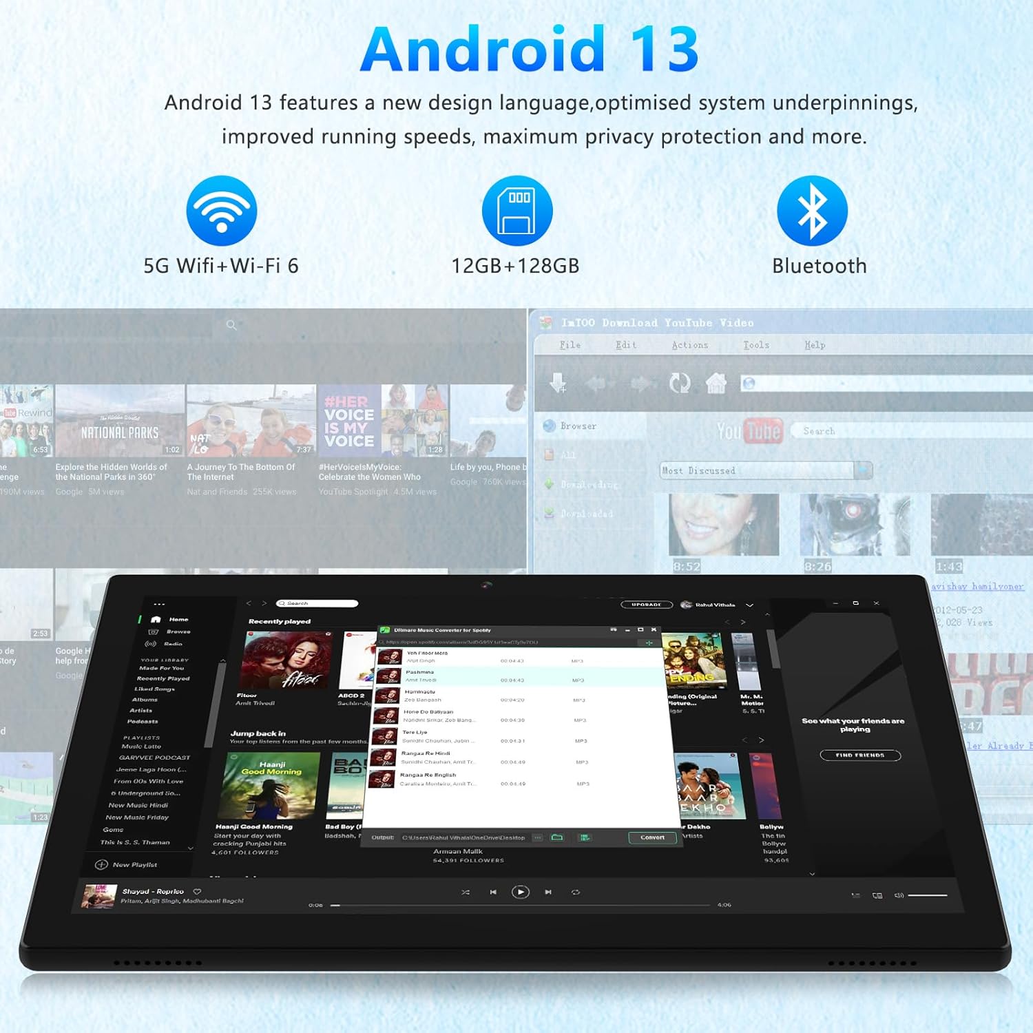 【5G WiFi+ Wifi 6】 This 10 inch tablet comes with built-in Bluetooth 5.0 and supports both 2.4G and 5G dual-band WIFI networks and Wifi6. It boasts a powerful storage combination of 12GB RAM(Including 4GB of extended memory) and 128GB ROM, In addition, it can be expanded up to 1TB with a TF card (card not included) for extra storage.