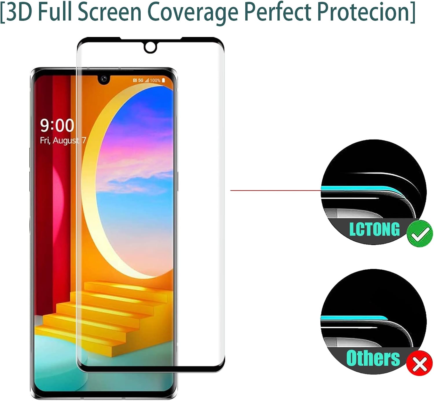 (2 Pack) LCTONG Tempered Glass Screen Protector for LG Velvet, 3D Curved, 9H Hardness, Anti-Scratch. Fingerprint Unlock Full Coverage Screen Protector Compatible LG Velvet