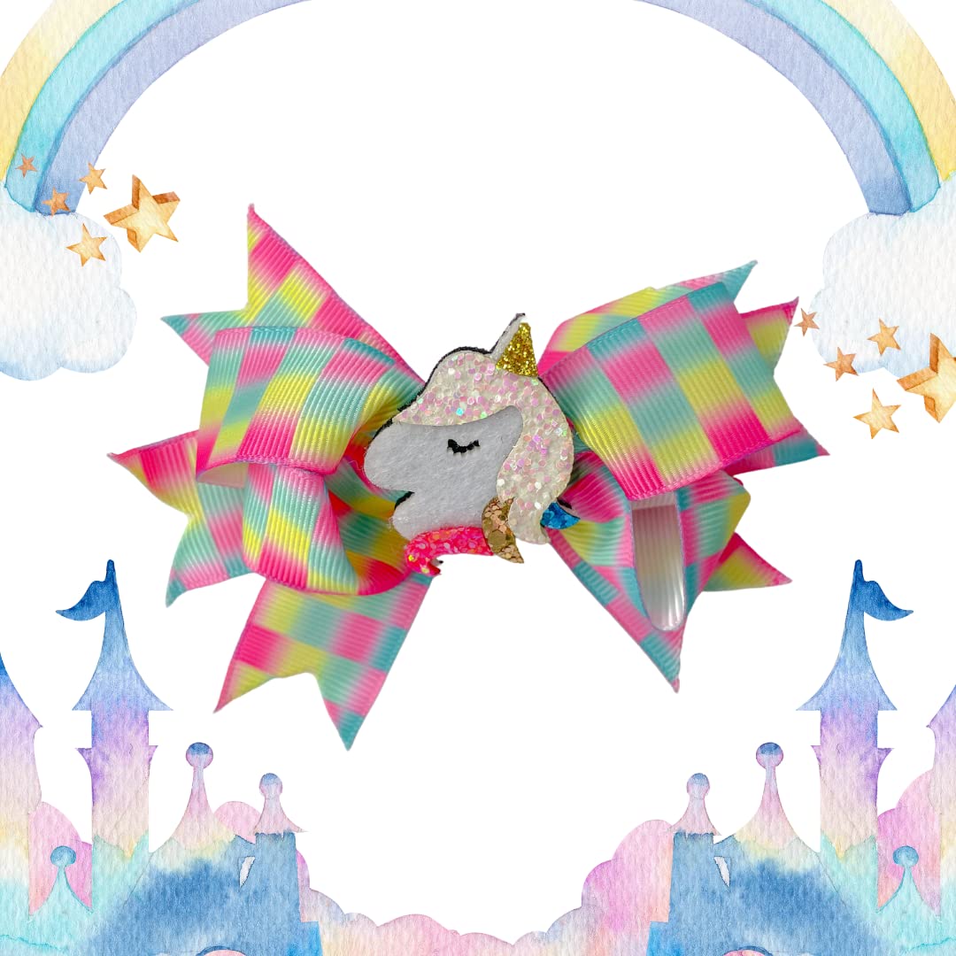 UNICORN DESIGN — with a stunning unicorn design, this hair bow is attached to an alligator clip with teeth. Makes a beautiful gift for birthdays or any other occasion.