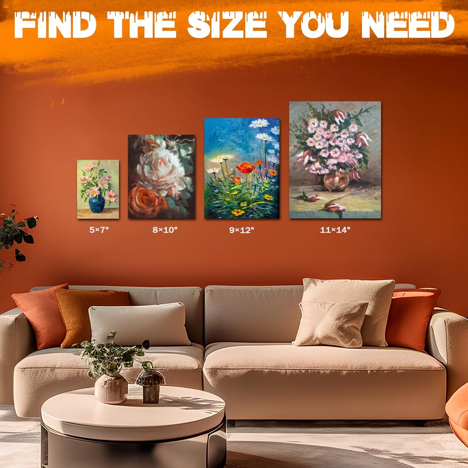 【High Quality & Eco-Friendly】The Canvas boards are made of 100% cotton and pre-primed with non-toxic, acid-free acrylic gesso to create a perfect ready-to-use painting surface. The sturdy frame can prevent your work from bending or warping.