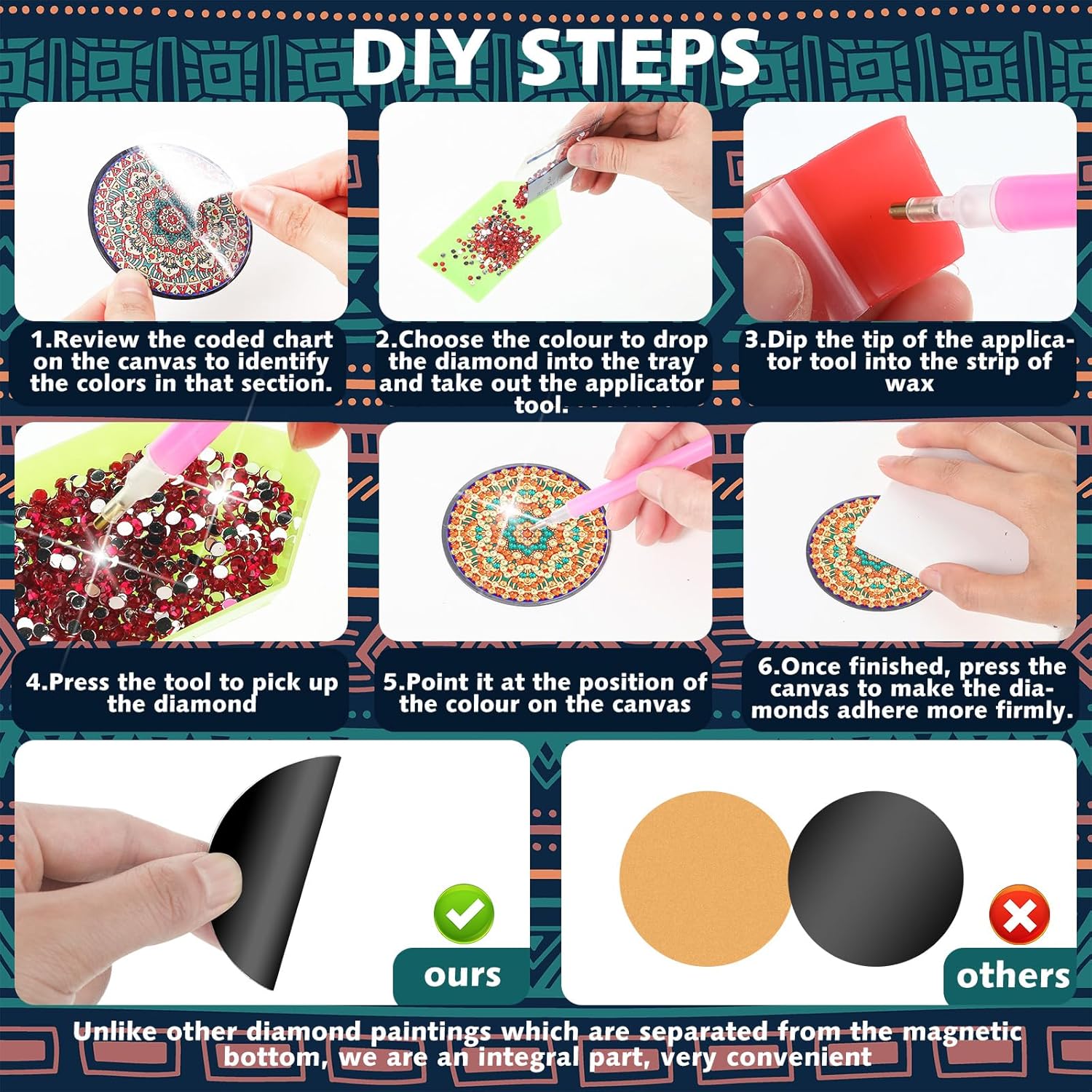 Beautiful Mandala Pattern: our diamond painting magnets feature delicate and colorful mandala designs, which add a touch of elegance and beauty to any kitchen or office space
