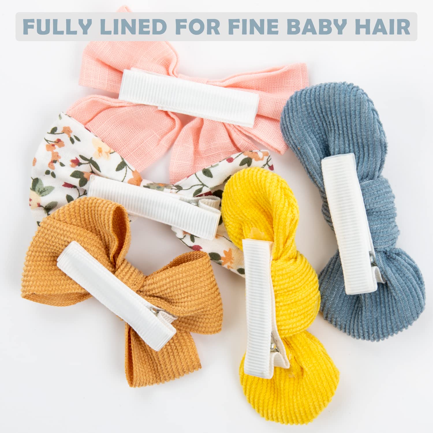 FULLY LINED HAIR CLIPS: The baby girl hair bows are beautifully finished and the clips are fully lined with fabric.Soft hair barrettes for fine baby hair without pulling or causing discomfort.