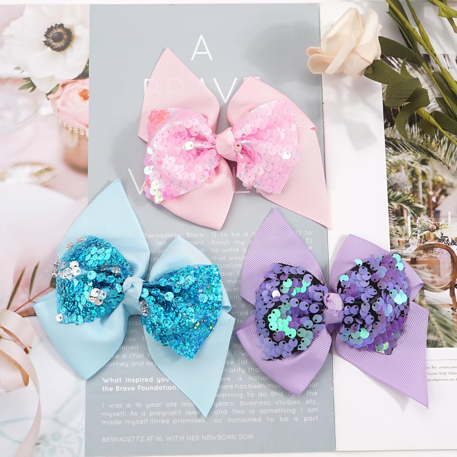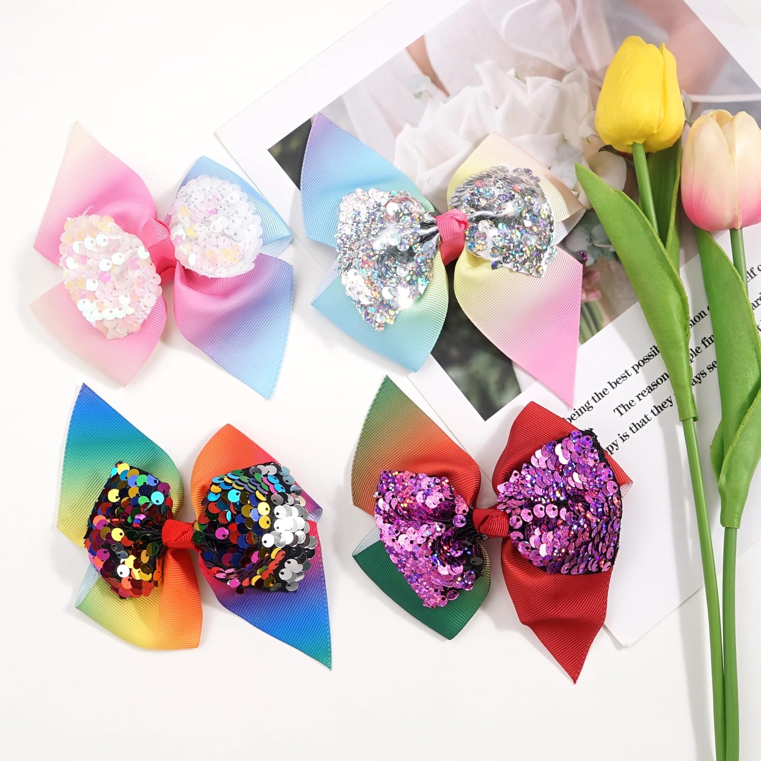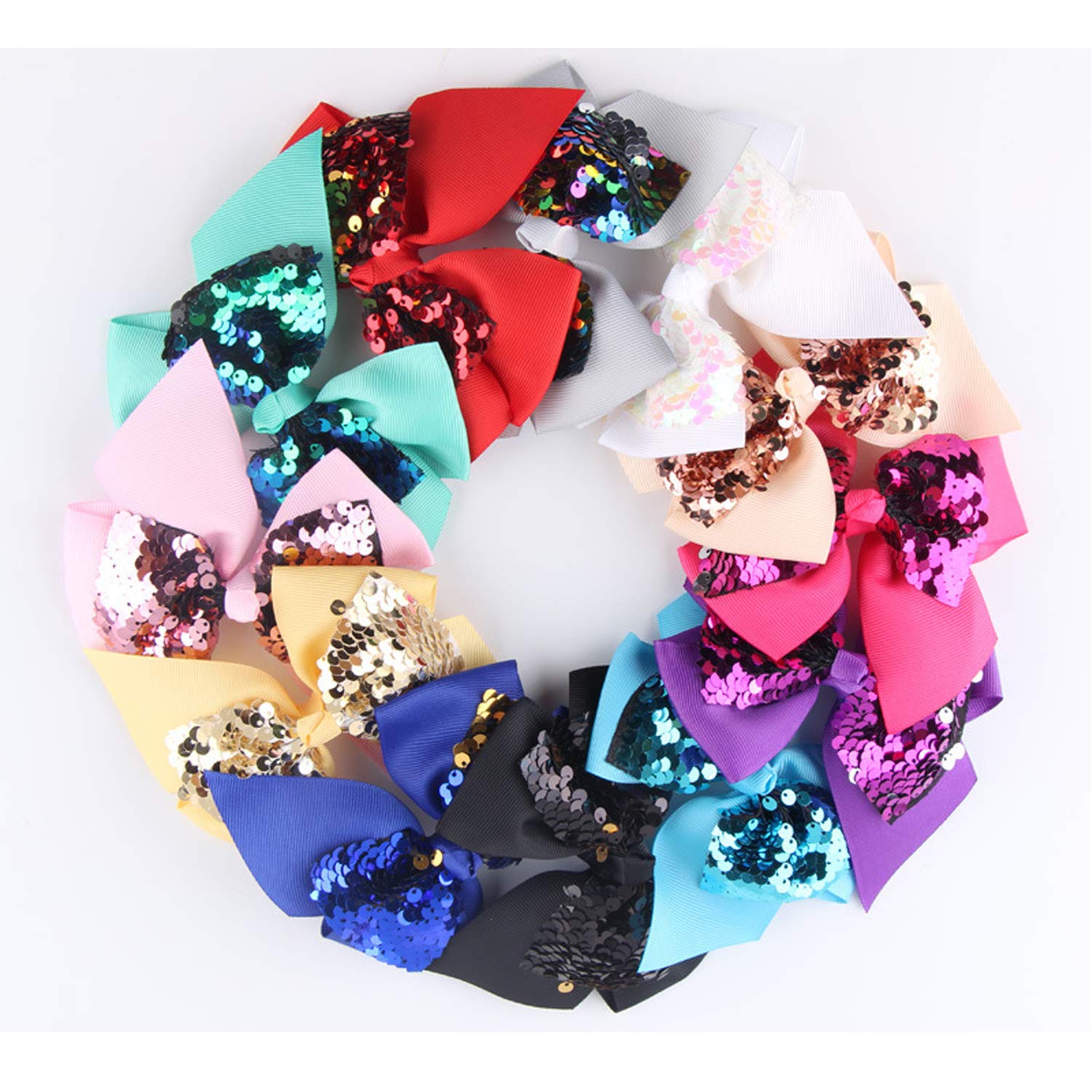 25PCS Sequin Hair Bows Clips 4.5Inch Grosgrain Ribbon Bows Reversible Sequin Hair Bows Alligator Hair Clips Hair Accessories for Girls Toddlers Kids Children