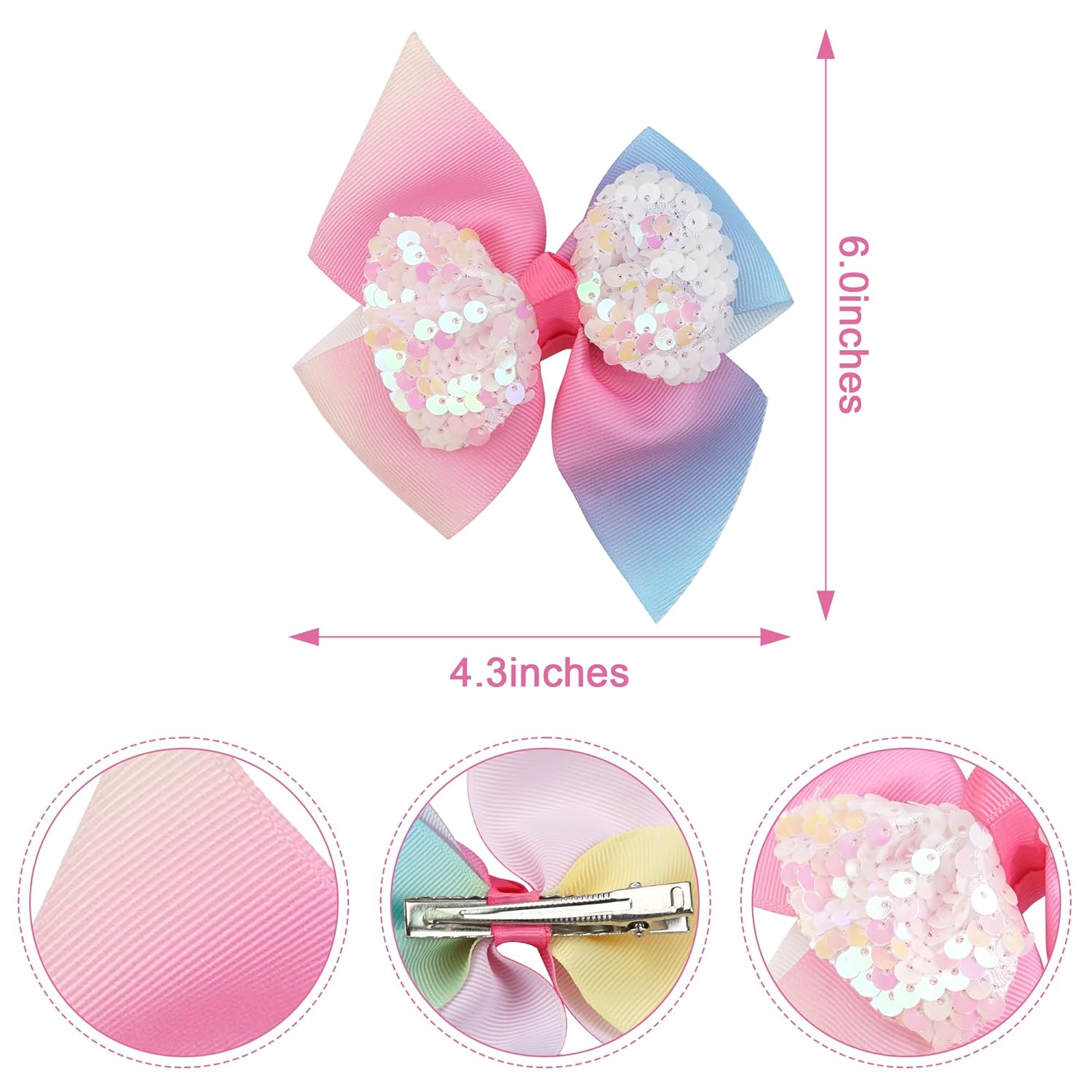 We offer 25 pieces hair bows clips for girls,25 different colors. You will get several styles of bows at the same time: grosgrain ribbon bows, reversible sequin bows, rainbow bows