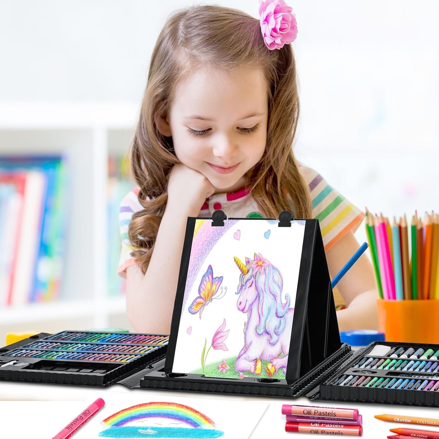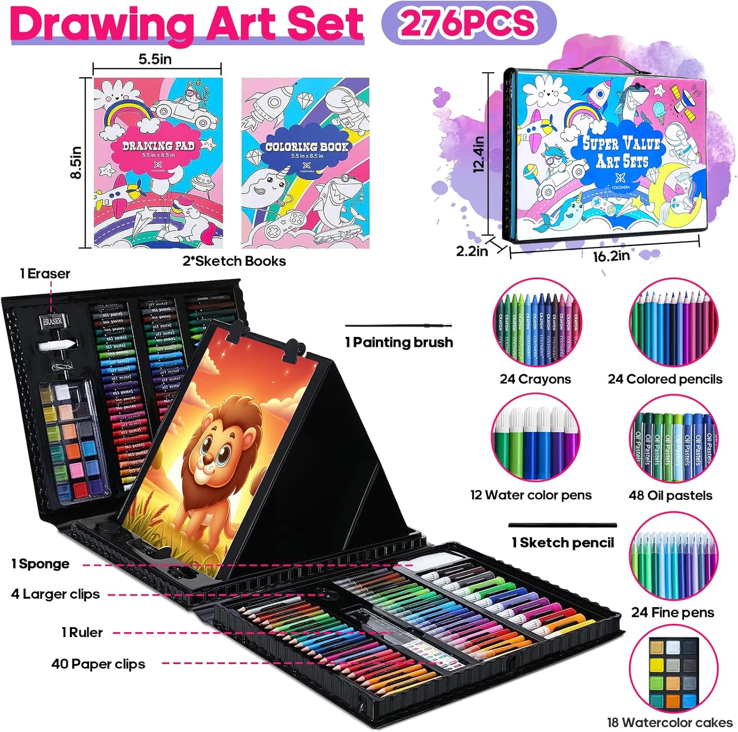 276pc Art Supplies Kit for Kids & Adults – Drawing Easel, Oil Pastels, Crayons, Colored Pencils, Paint Brush, Watercolors – Gift for Artists