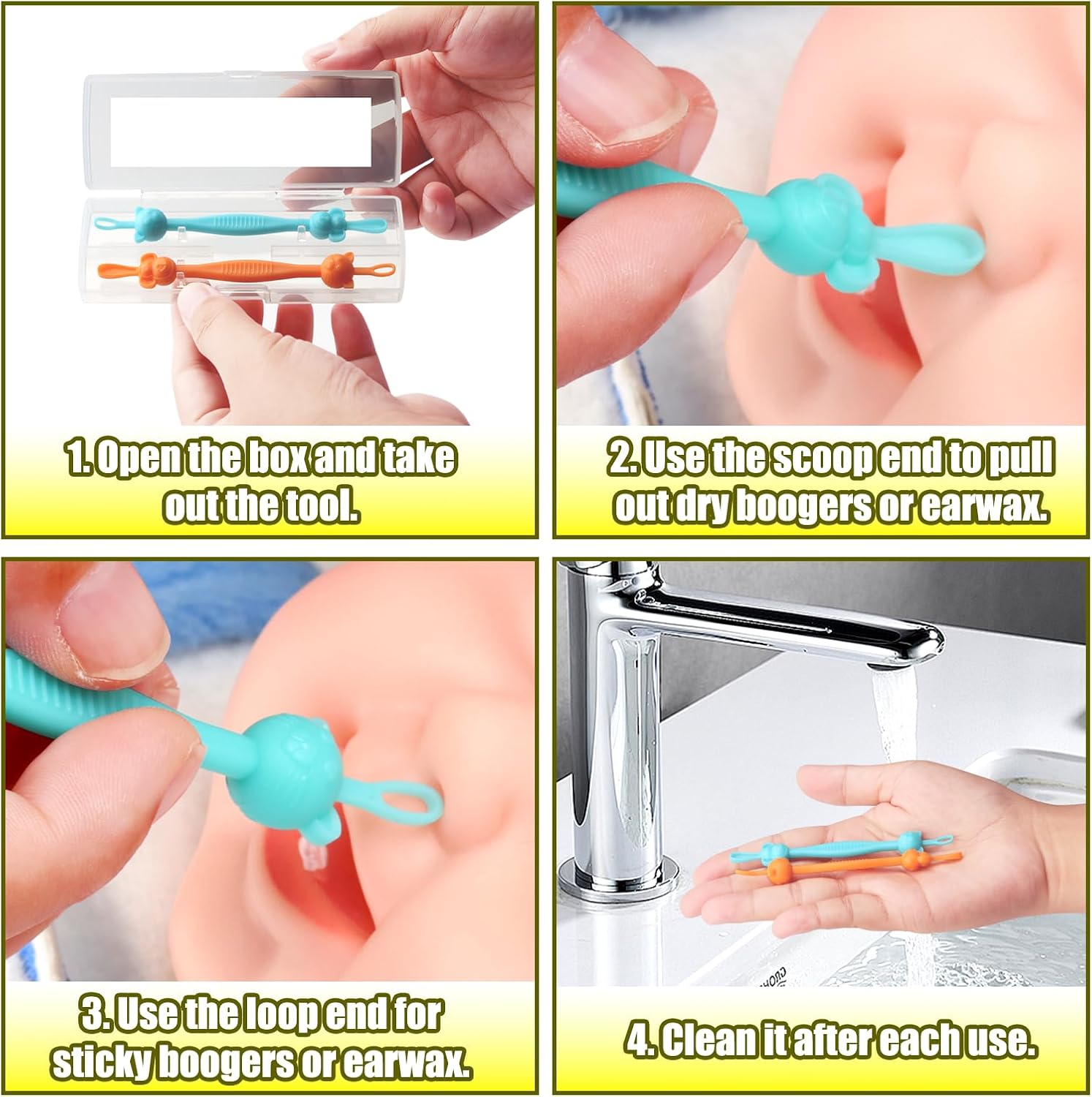 Dual-Ended Tool: The scoop-ended for digging out dried boogers and earwax, and the loop-ended for removing sticky boogers and earwax. Wash them with water after each use.